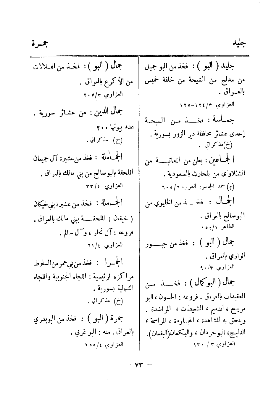 فخذ من العقيدات بالعراق. فروعه: الحسون، البو مريح، الدميم، الشعيطات، المراشدة.