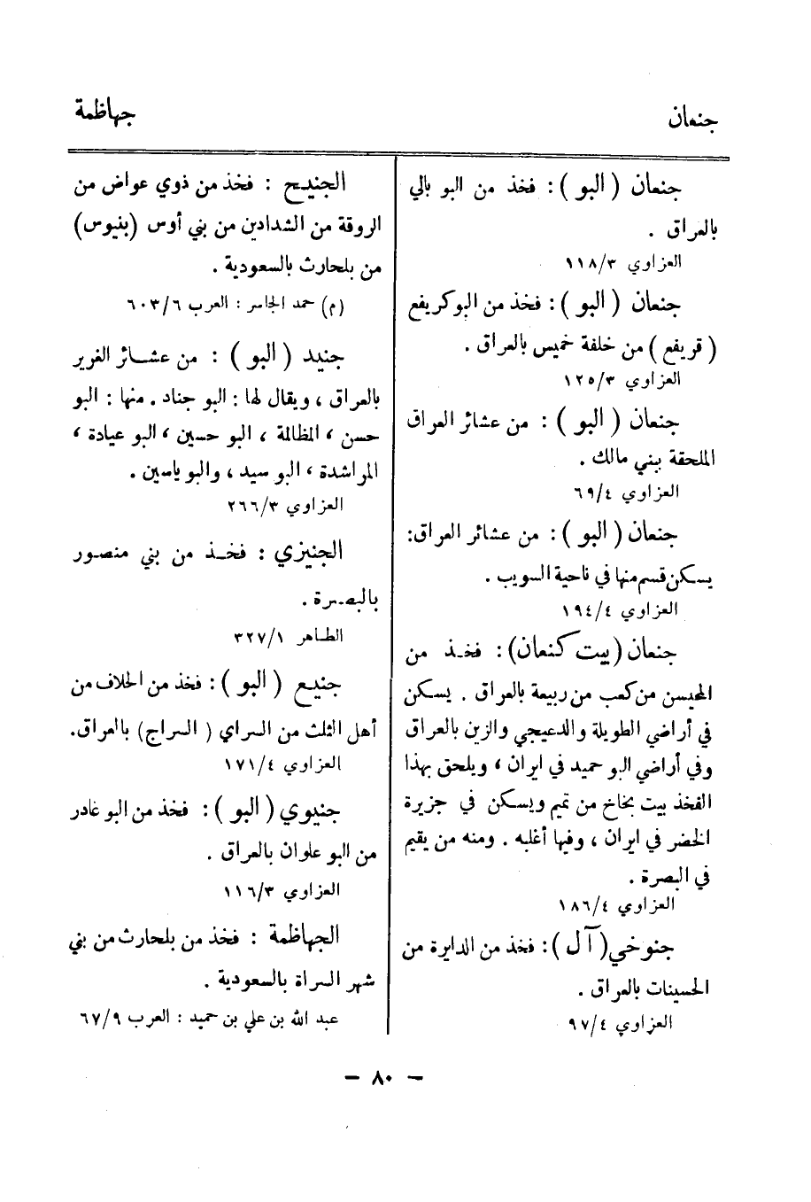 من عشائر الغرير بالعراق، ويقال لها: البو جناد. منها: البو حسن، المظالمة، البو حسين، البو عيادة، المراشدة، البو سيد، والبو ياسين.