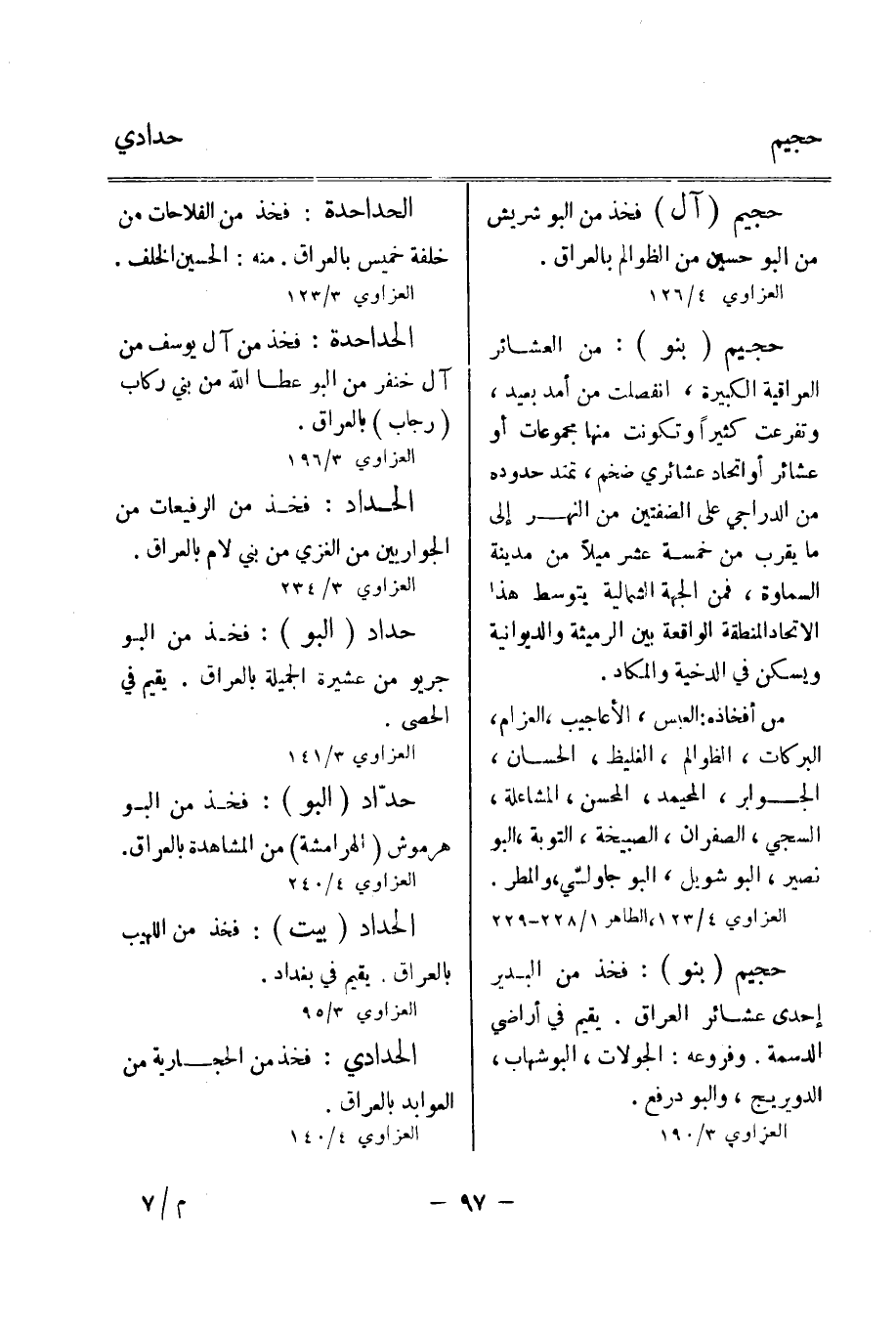 من العشائر العراقية الكبيرة، انفصلت من أمد بعيد، وتفرعت كثيرا وتكونت منها مجموعات أو عشائر أو اتحاد عشائري ضخم، تمتد حدوده من الدراجي على الصفتين من النهر إلى ما يقرب من خمسة عشر ميلا من مدينة السماوة، فمن الجهة الشمالية يتوسط هذا الاتحاد المنطقة الواقعة بين الرميثة والديوانية ويسكن في الدخية والمكاد.