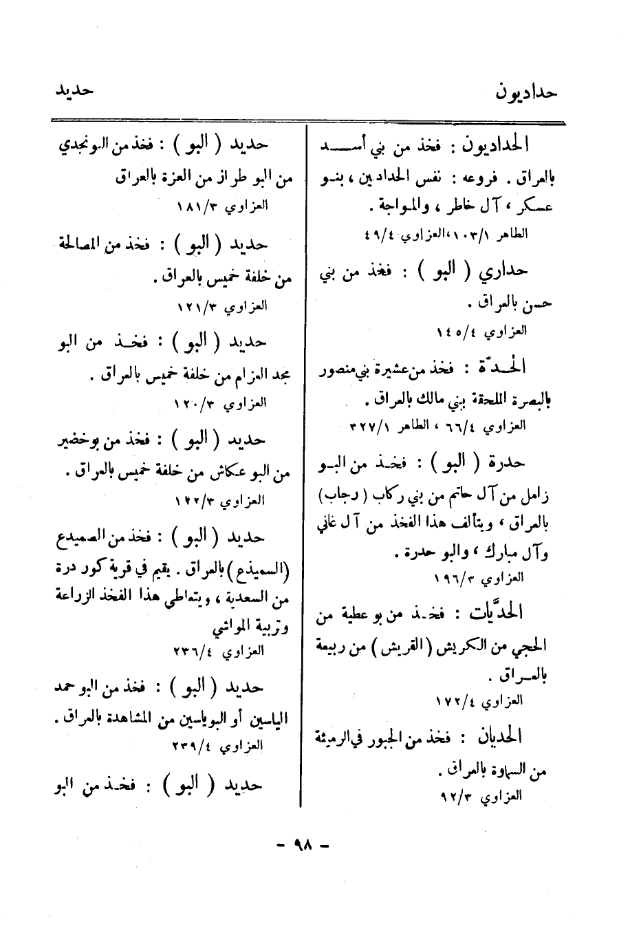 الطاهر 1/ 103، العزاوي 4/ 49