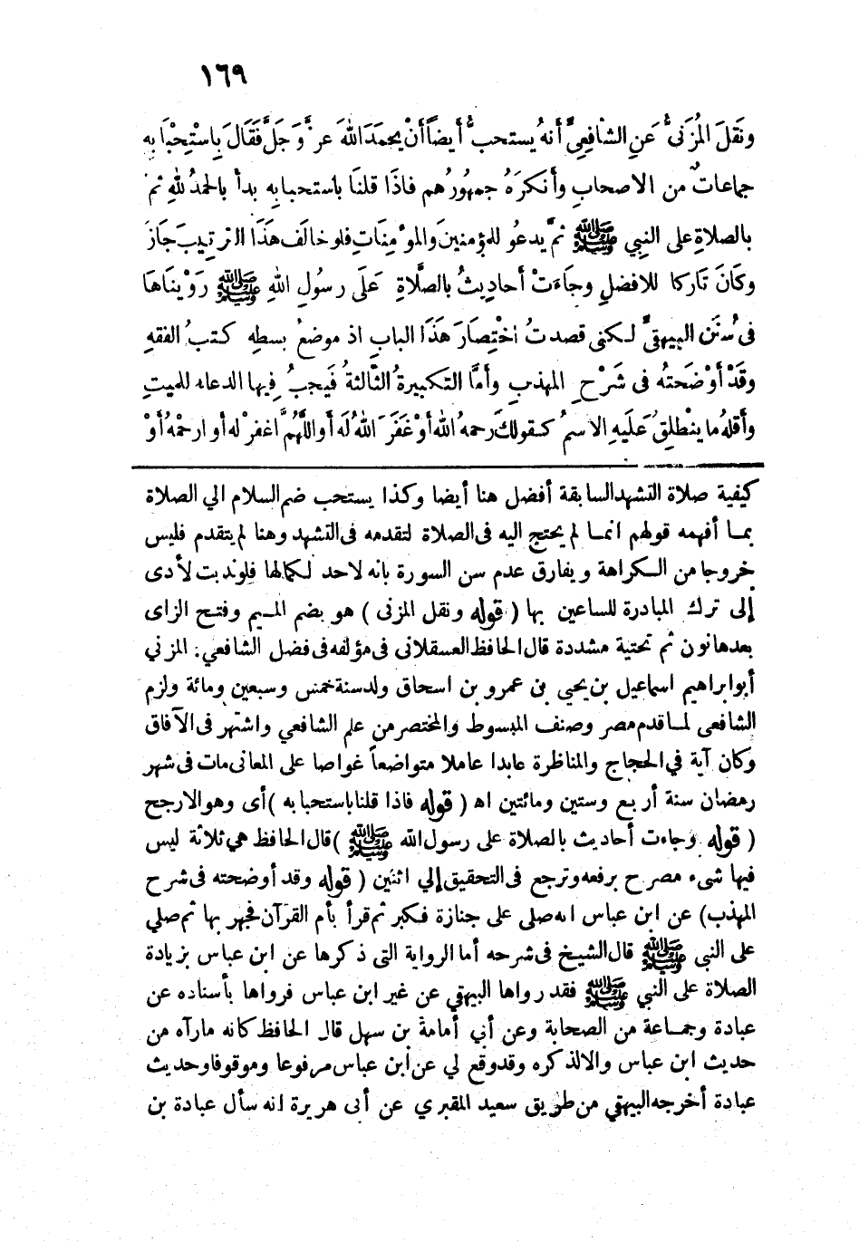 قوله: (وجَاءَتْ أَحادِيثُ بالصَّلاةِ عَلَى رسُول - صلى الله عليه وسلم -) قال الحافظ هي ثلاثة ليس فيها شيء مصرح برفعه وترجع في التحقيق إلى اثنين. قوله: (وقَدْ أَوْضَحتُه في شَرْحِ المهذبِ) عن ابن عباس
