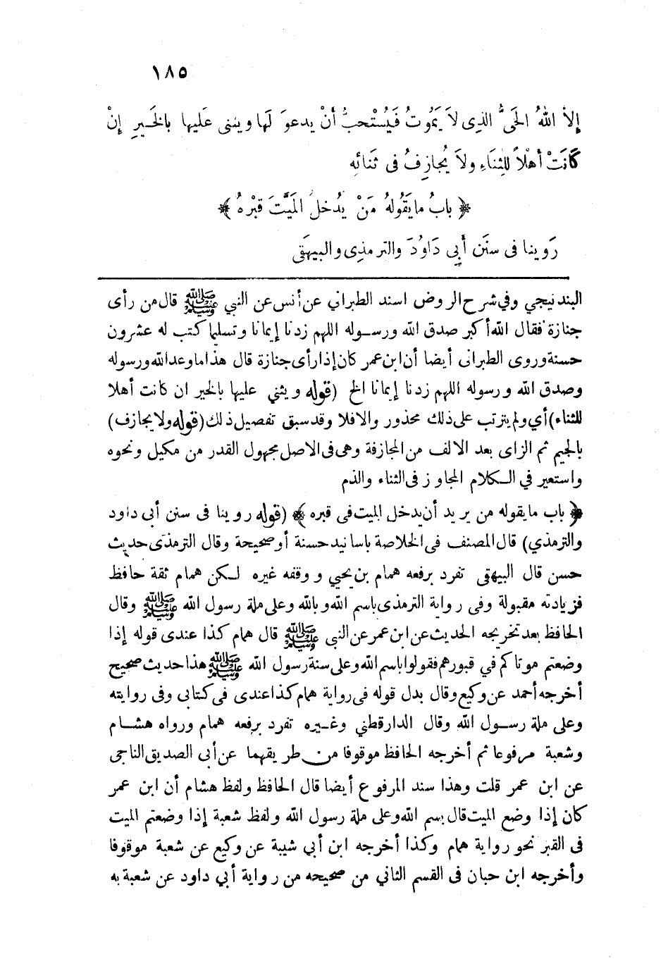 إلا اللهُ الحَي الَّذِي لا يَمُوتُ، فيستحبُّ أن يدعوَ لها ويثني عليها بالخير إن كانت أهلًا للثناء ولا يجازف في ثنائه.