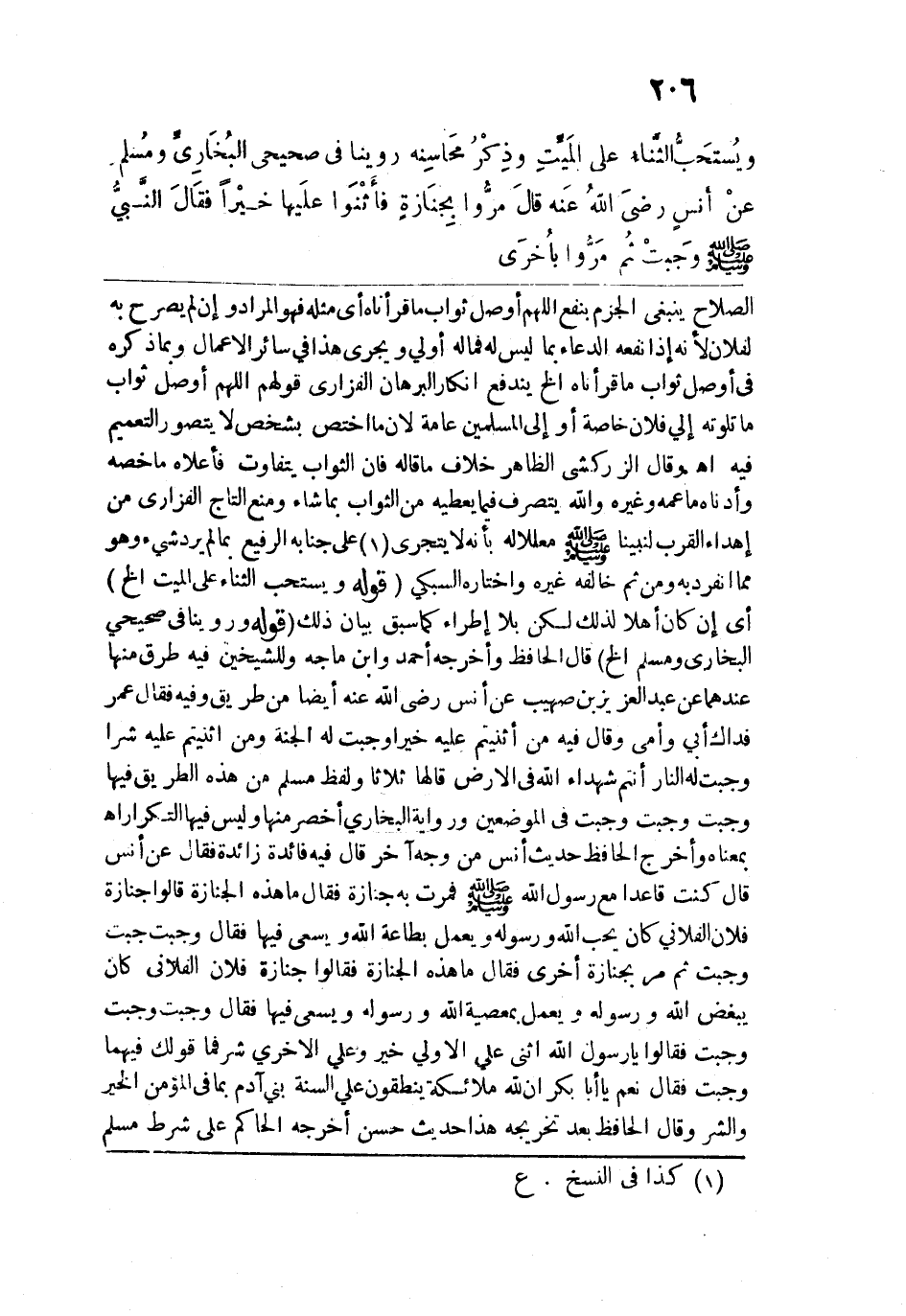 وروينا في "صحيحي البخاري ومسلم" عن أنس رضي الله عنه، قال: مَرُّوا بجنازة فأثْنَوا عليها خيرًا، فقال النبيُّ - صلى الله عليه وسلم -: "وَجَبَتْ"، ثم مَرُّوا بأخرى،