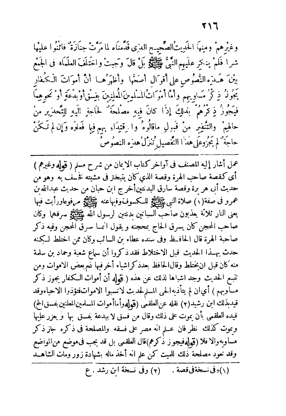 عمل أشار إليه المصنف في أواخر كتاب الإيمان من شرح مسلم. قوله: (وغْيرِهم) أي كقصة صاحب الهرة وقصة الذي كان يتبختر في مشيته فخسف به وهو من حديث أبي هريرة وقصة سارق البدنتين أخرج ابن حبان من حديث عبد الله بن عمرو في صفة صلاة النبي - صلى الله عليه وسلم - للكسوف وفيها عنه - صلى الله عليه وسلم - مرفوعًا ورأيت فيها يعني النار ثلاثة يعذبون صاحب السباتين بدنتين لرسول الله - صلى الله عليه وسلم - سرقهما وكان صاحب المحجن كان يسرق الحاج بمحجنه ويقول إنما سرق المحجن وفيه ذكر صاحبة الهرة قال الحافظ وفي سنده عطاء بن السائب وكان ممن اختلط لكنه حدث بهذا الحديث قبل الاختلاط فقد ذكروا أن سماع شعبة وحماد بن سلمة منه كان قبل أن يختلط وقال الحافظ بعد ذكر أشياء أخرجها ذم بعض الأموات ومن تتبع الحديث وجد أشباها لذلك عن هذه. قوله: (أَنَّ أَمَوَاتَ الْكُفارِ يَجُوزُ ذِكْرُ مَساويهِم) أي إن لم يتأذ به الحي المسلم لحديث لا تسبوا الأموات فتؤذوا الأحياء وقد قيد بذلك ابن رشيد نقله عن العلقمي. قوله: (وأما أموات المسلمين المعلنين بفسق الخ) قيده العلقمي بأن يموت على ذلك وقال من فسق لا ببدعة يفسق بها ويعزر عليها ويموت كذلك نظر فإن علم إنه مصر على فسقه والمصلحة في ذكره جاز ذكر مساويه وإلّا فلا. قوله: (فيجوز ذكرهم) قال العلقمي بل قد يجب في موضع من المواضع وقد تعود مصلحة ذلك للميت كمن علم إنه أخذ ماله بشهادة زور ومات الشاهد