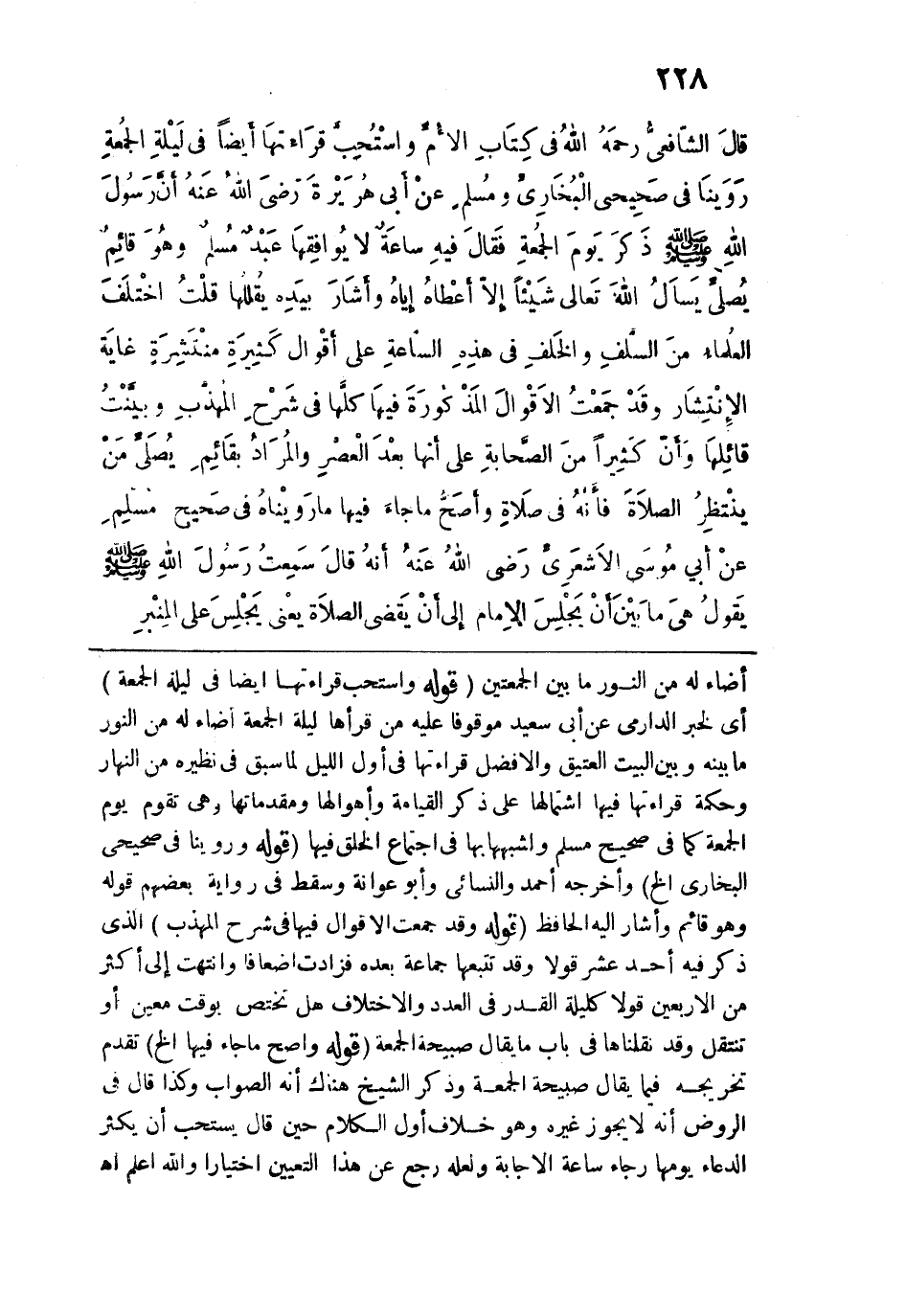 وأصحُّ ما جاء فيها: ما رويناه في "صحيح مسلم" عن أبي موسى الأشعري رضي الله عنه أنه قال: سمعت رسول الله - صلى الله عليه وسلم - يقول: "هيَ ما بَينَ أنْ يَجْلِسَ الإِمام إلى أن تُقْضَى الصَّلاةُ" يعني يجلس على المنبر.