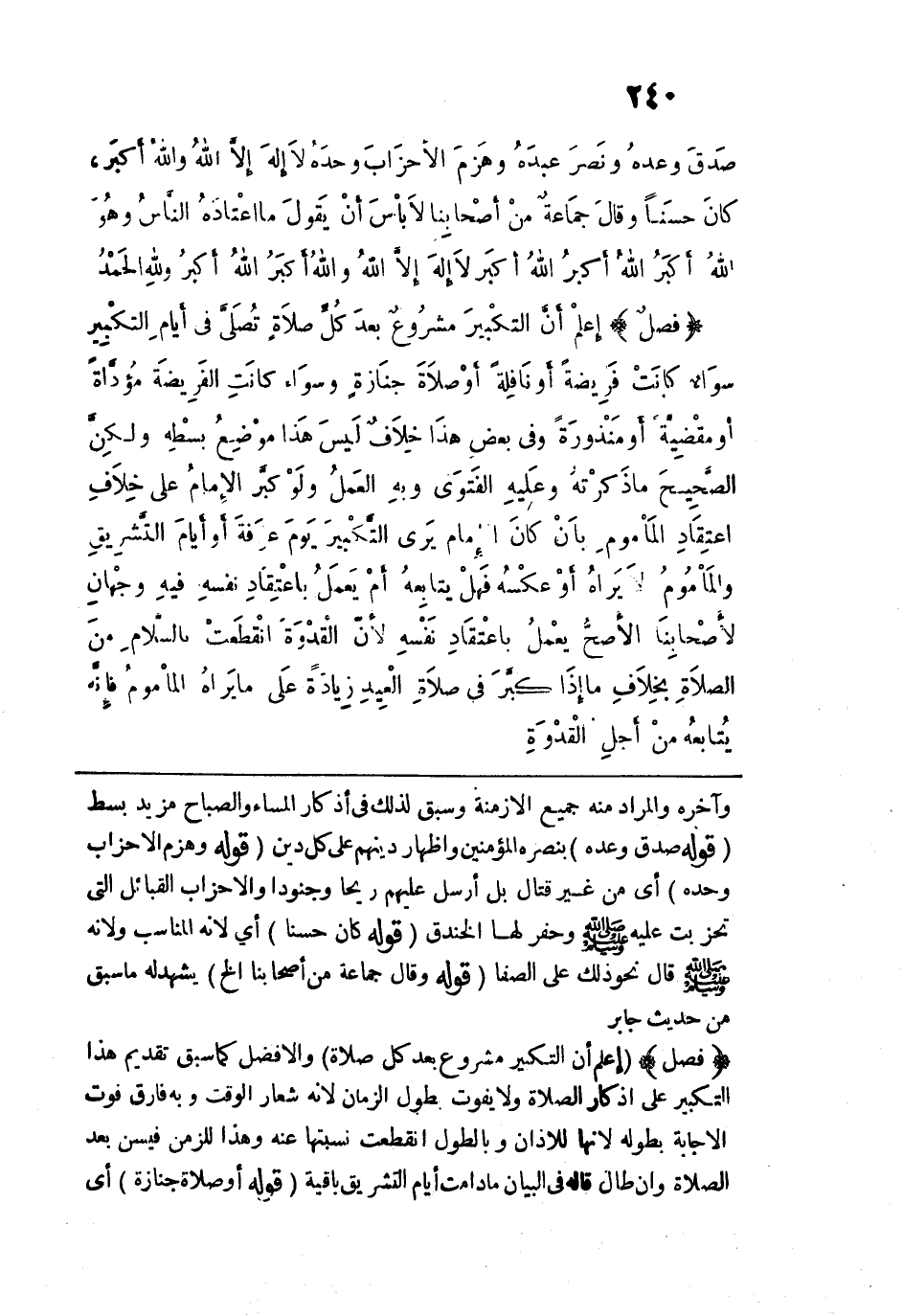 (اعلْم أَنَّ التكْبيرَ مشرُوعٌ بعدَ كُل صلاةِ) والأفضل كما سبق تقديم هذا التكبير على أذكار الصلاة ولا يفوت بطول الزمان لأنه شعار الوقت وبه فارق فوت الإجابة بطوله لأنها للأذان وبالطول انقطعت نسبتها عنه وهذا للزمن فيسن بعد الصلاة وإن طال قاله في البيان ما دامت أيام التشريق باقية. قوله: (أَوْ صلاةَ جنَازةٍ) أي