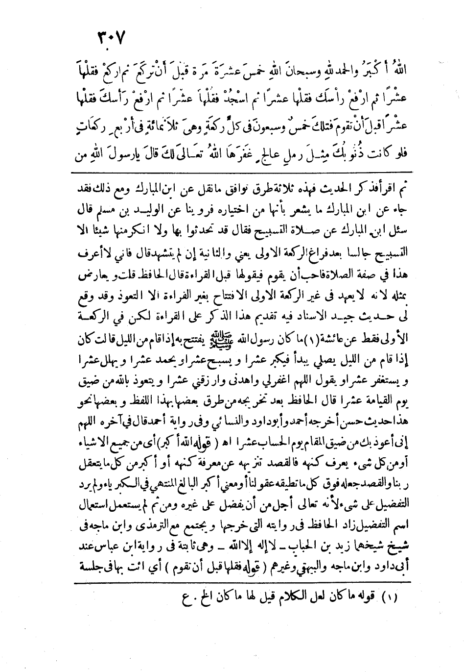 اللهُ أكْبَرُ وَالْحَمْدُ لِلهِ وَسُبْحَانَ الله خَمْسَ عَشْرَةَ مَرَّةً قَبْلَ أنْ تَرْكَعَ، ثُمَّ ارْكَعْ فَقُلْها عَشْرًا ثُمَّ ارْفَعْ رَأسَك، فَقُلْها عَشْرًا، ثُم اسْجُدْ، فَقُلْها عَشْرًا، ثُمَّ ارْفَع رَأسَكَ، فَقُلْها عَشْرًا قَبْلَ أنْ تَقُومَ، فَتِلْكَ خَمسٌ وَسَبْعُونَ في كُل رَكْعَة، وَهِيَ ثَلاثُمائَة في أرْبَعِ رَكَعاتٍ، فَلَوْ كَانَتْ ذُنُوبُكَ مِثْلَ رَمْلِ عالِج غَفَرَها اللهُ تَعالى لَكَ"، قال: يا رسول الله من