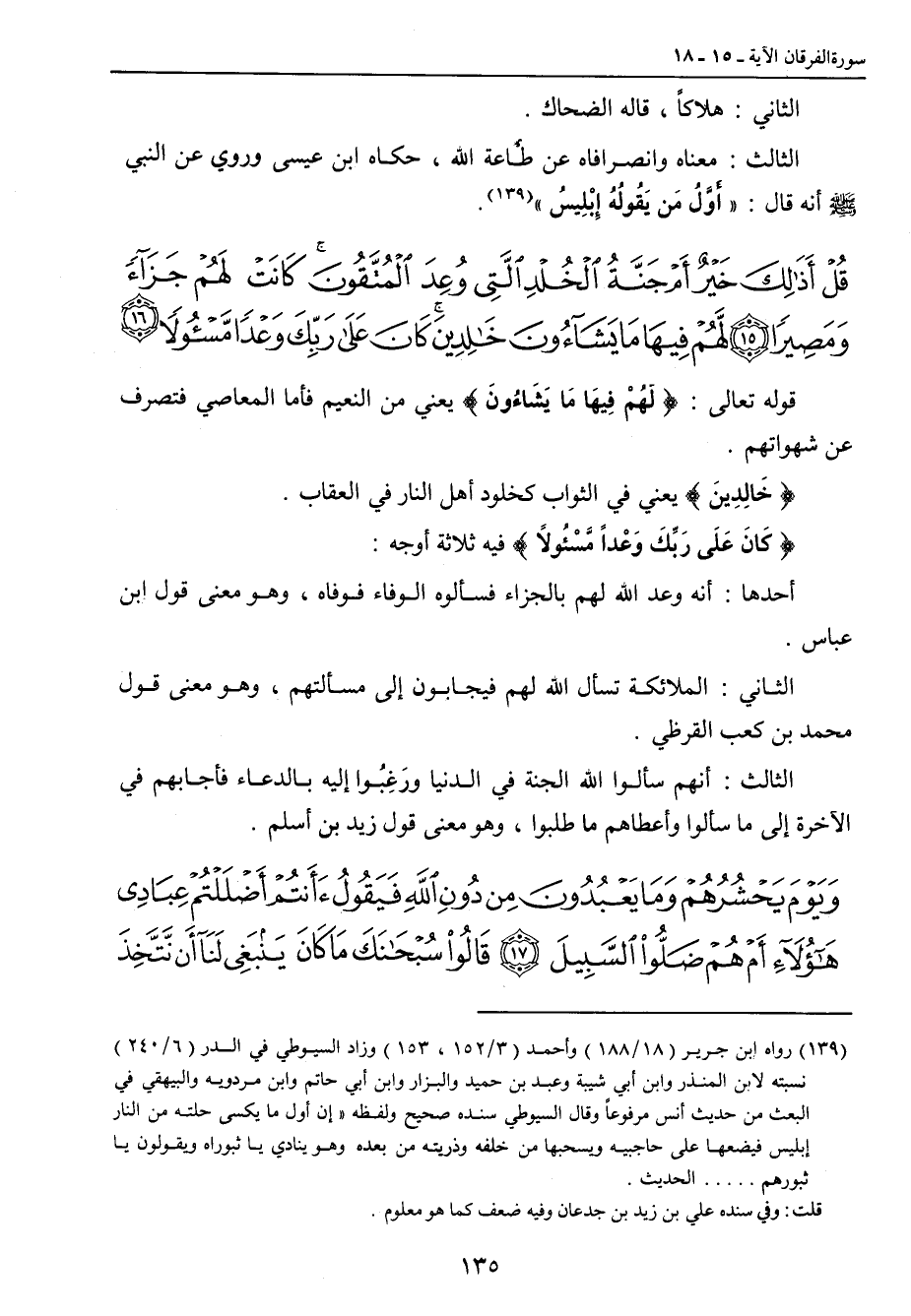 {ويوم يحشرهم وما يعبدون من دون الله فيقول أأنتم أضللتم عبادي هؤلاء أم هم ضلوا السبيل قالوا سبحانك ما كان ينبغي لنا أن نتخذ