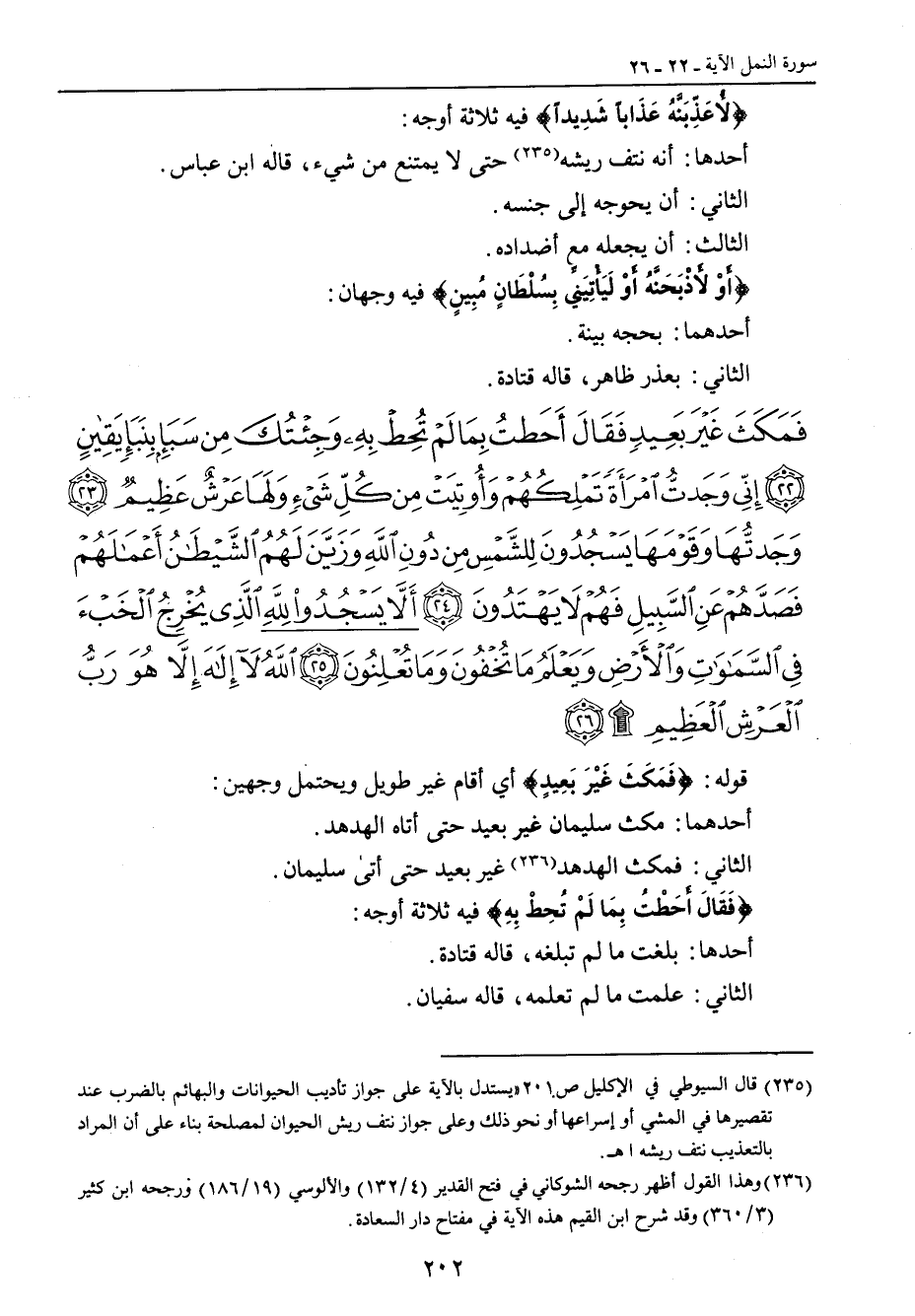 {فمكث غير بعيد فقال أحطت بما لم تحط به وجئتك من سبإ بنبإ يقين إني وجدت امرأة تملكهم وأوتيت من كل شيء ولها عرش عظيم وجدتها وقومها يسجدون للشمس من دون الله وزين لهم الشيطان أعمالهم فصدهم عن السبيل فهم لا يهتدون ألا يسجدوا لله الذي يخرج الخبء في السماوات والأرض ويعلم ما تخفون وما تعلنون الله لا إله إلا هو رب العرش العظيم} قوله: {فَمَكَثَ غَيْرَ بَعِيدٍ} أي أقام غير طويل ويحتمل وجهين: أحدهما: مكث سليمان غير بعيد حتى أتاه الهدهد. الثاني: فمكث الهدهد غير بعيد حتى أتى سليمان. {فَقَالَ أَحَطْتُ بِمَا لَمْ تُحِطْ بِهِ} فيه ثلاثة أوجه: أحدها: بلغت ما لم تبلغه، قاله قتادة. الثاني: علمت ما لم تعلمه، قاله سفيان.