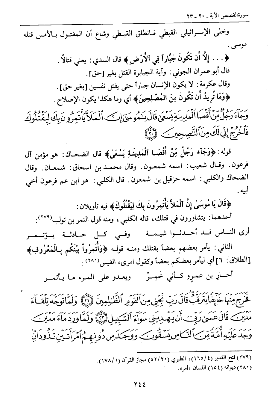 {فخرج منها خائفا يترقب قال رب نجني من القوم الظالمين ولما توجه تلقاء مدين قال عسى ربي أن يهديني سواء السبيل ولما ورد ماء مدين وجد عليه أمة من الناس يسقون ووجد من دونهم امرأتين تذودان