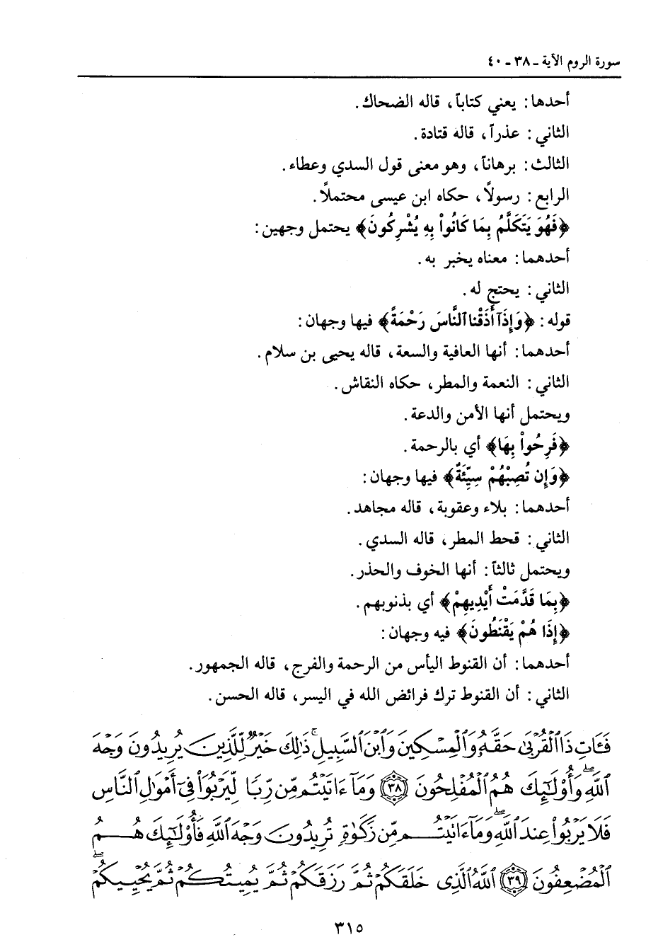 {فآت ذا القربى حقه والمسكين وابن السبيل ذلك خير للذين يريدون وجه الله وأولئك هم المفلحون وما آتيتم من ربا ليربو في أموال الناس فلا يربو عند الله وما آتيتم من زكاة تريدون وجه الله فأولئك هم المضعفون الله الذي خلقكم ثم رزقكم ثم يميتكم ثم يحييكم