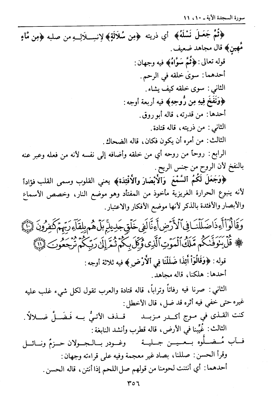 {وقالوا أئذا ضللنا في الأرض أئنا لفي خلق جديد بل هم بلقاء ربهم كافرون قل يتوفاكم ملك الموت الذي وكل بكم ثم إلى ربكم ترجعون} قوله: {وَقَالُواْ أَئِذَا ضَلَلْنَا فِي الأَرْضِ} فيه ثلاثة أوجه: أحدها: هلكنا , قاله مجاهد. الثاني: صرنا فيه رفاتاً وتراباً , قاله قتادة والعرب تقول لكل شيء غلب عليه غيره حتى خفي فيه أثره قد ضل , قال الأخطل: