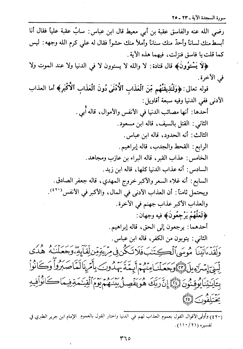 {ولقد آتينا موسى الكتاب فلا تكن في مرية من لقائه وجعلناه هدى لبني إسرائيل وجعلنا منهم أئمة يهدون بأمرنا لما صبروا وكانوا بآياتنا يوقنون إن ربك هو يفصل بينهم يوم القيامة فيما كانوا فيه يختلفون}