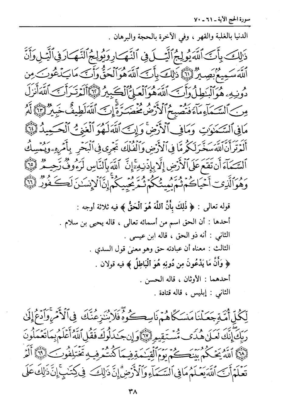 {لكل أمة جعلنا منسكا هم ناسكوه فلا ينازعنك في الأمر وادع إلى ربك إنك لعلى هدى مستقيم وإن جادلوك فقل الله أعلم بما تعملون الله يحكم بينكم يوم القيامة فيما كنتم فيه تختلفون ألم تعلم أن الله يعلم ما في السماء والأرض إن ذلك في كتاب إن ذلك على