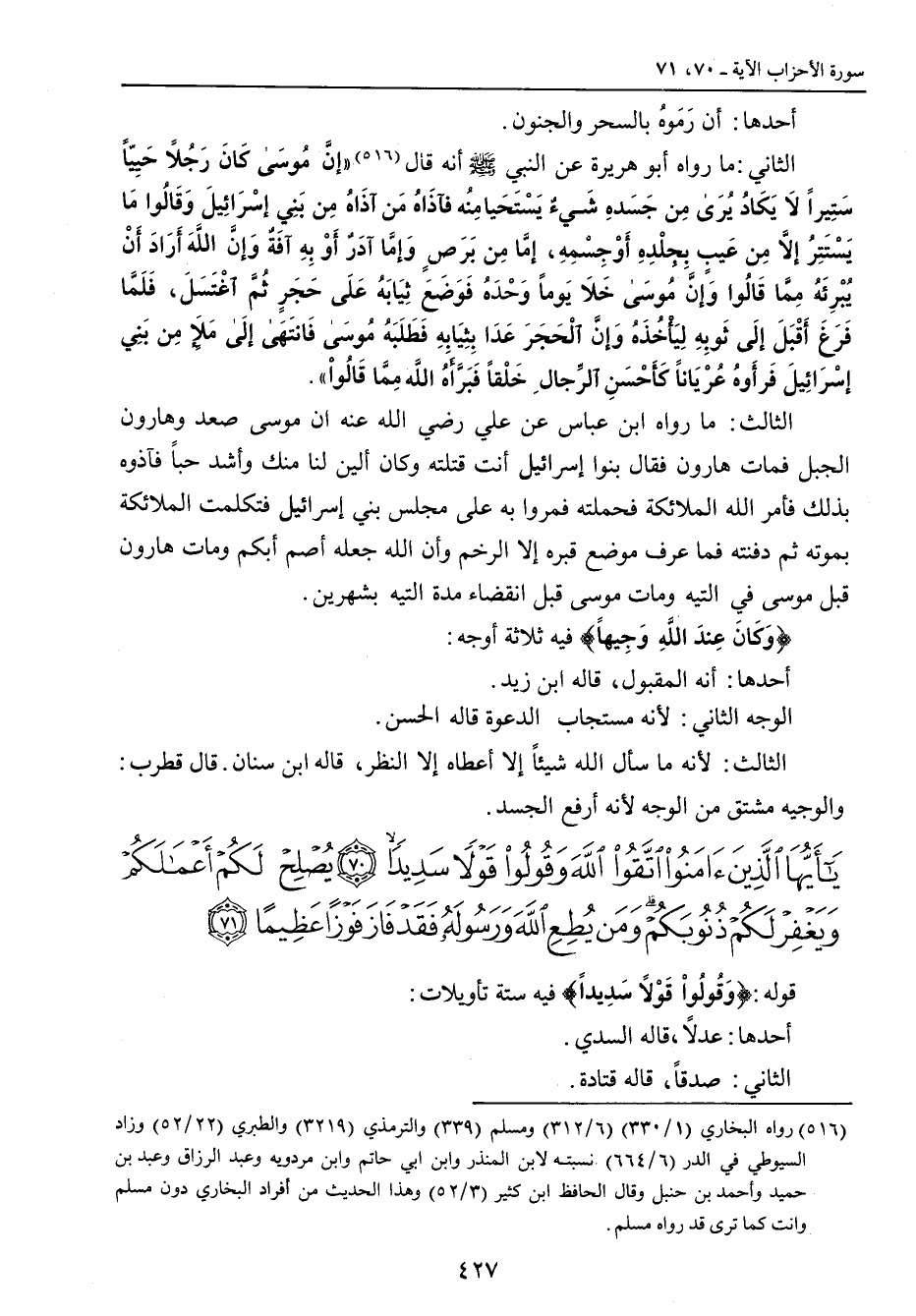 {يا أيها الذين آمنوا اتقوا الله وقولوا قولا سديدا يصلح لكم أعمالكم ويغفر لكم ذنوبكم ومن يطع الله ورسوله فقد فاز فوزا عظيما} قوله: {َوَقُولُواْ قَوْلاً سَدِيداً} فيه ستة تأويلات: أحدها: عدلاً , قاله السدي. الثاني: صدقاً، قاله قتادة.