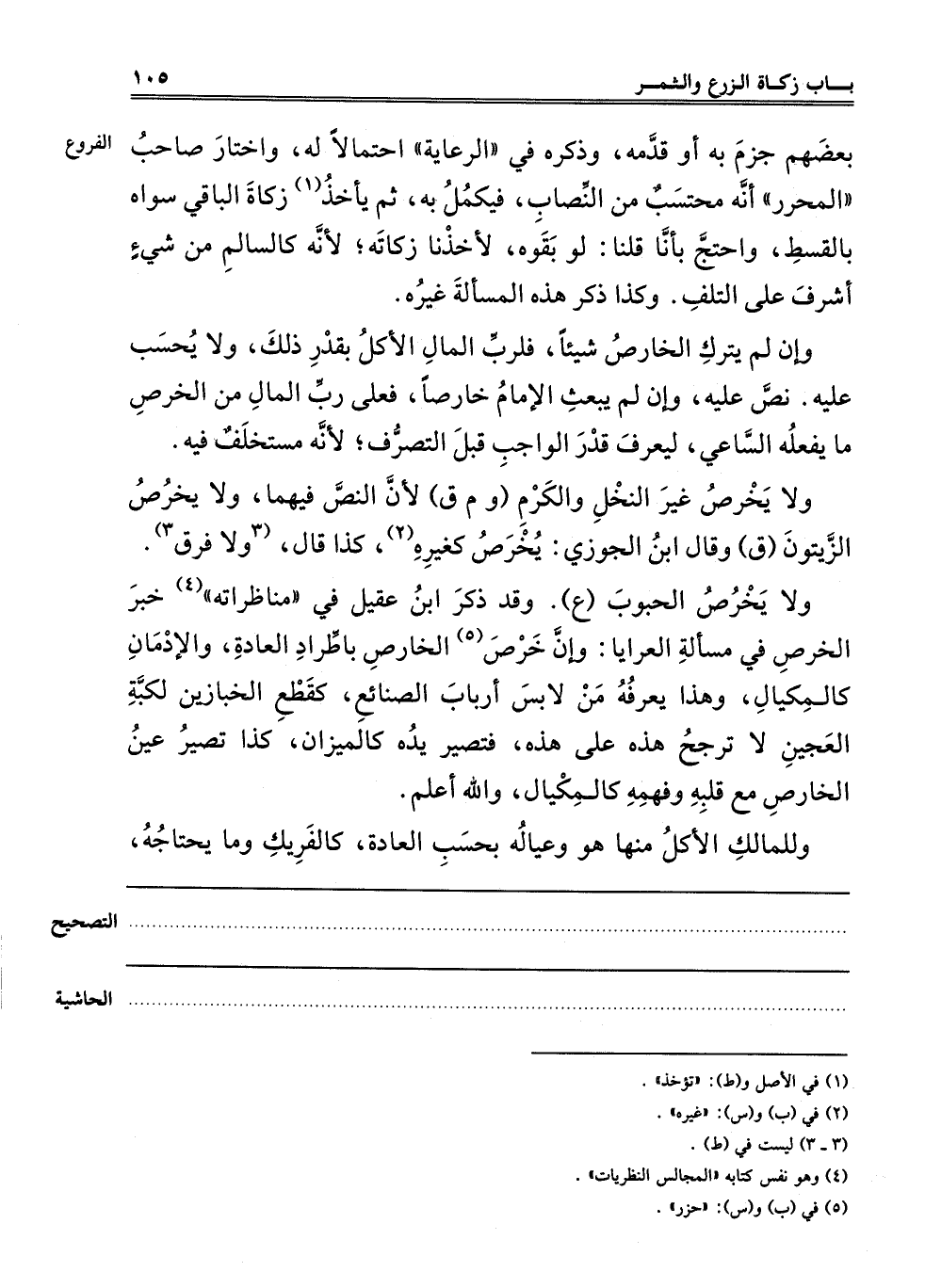 وَلَا يُخْرَصُ الْحُبُوبُ، "ع" وَقَدْ ذَكَرَ ابْنُ عَقِيلٍ فِي مُنَاظَرَاتِهِ4 خَبَرَ الْخَرْصِ فِي مَسْأَلَةِ الْعَرَايَا، وَإِنْ خَرَصَ5 الْخَارِصُ بِاطِّرَادِ الْعَادَةِ وَالْإِدْمَانِ كَالْمِكْيَالِ، وَهَذَا يَعْرِفُهُ مَنْ لَابَسَ أَرْبَابَ الصَّنَائِعِ، كَقَطْعِ الْخَبَّازِينَ الْكُبَّةَ الْعَجِينَ لَا تُرَجَّحُ هَذِهِ عَلَى هَذِهِ، فَتَصِيرُ يَدُهُ كَالْمِيزَانِ، كَذَا تَصِيرُ عَيْنُ الْخَارِصِ مَعَ قَلْبِهِ وَفَهْمِهِ كَالْمِكْيَالِ، وَاَللَّهُ أَعْلَمُ.