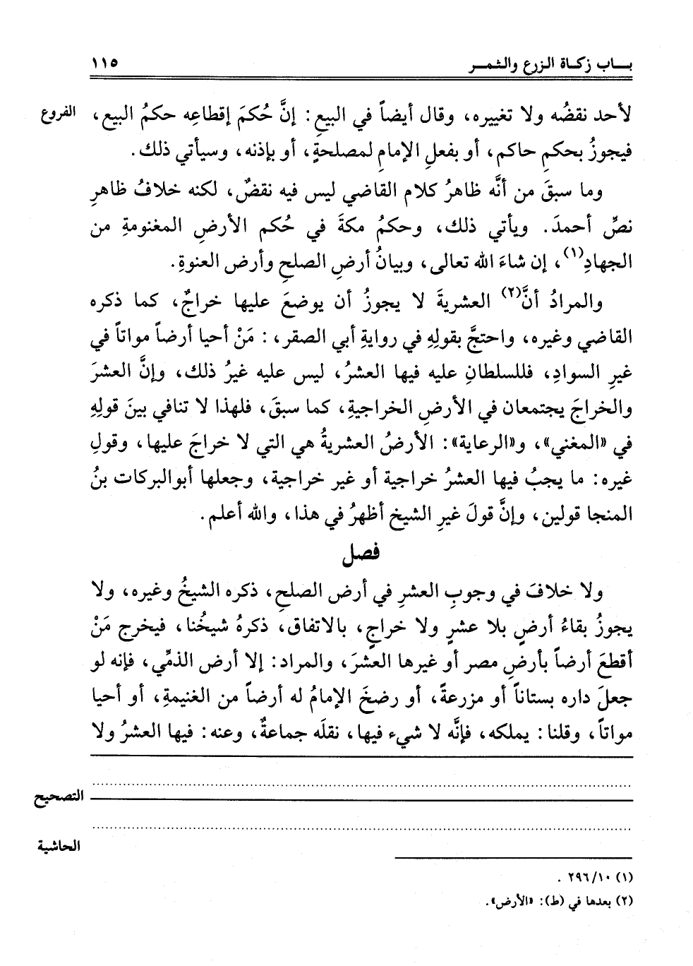 والمراد أن2 الْعُشْرِيَّةَ لَا يَجُوزُ أَنْ يُوضَعَ عَلَيْهَا خَرَاجٌ، كَمَا ذَكَرَهُ الْقَاضِي وَغَيْرُهُ، وَاحْتَجَّ بِقَوْلِهِ فِي رِوَايَةِ أَبِي الصَّقْرِ: مَنْ أَحْيَا أَرْضًا مَوَاتًا فِي غَيْرِ السَّوَادِ فَلِلسُّلْطَانِ عَلَيْهِ فِيهَا الْعُشْرُ، لَيْسَ عَلَيْهِ غَيْرُ ذَلِكَ، وَإِنَّ الْعُشْرَ وَالْخَرَاجَ يَجْتَمِعَانِ فِي الْأَرْضِ الْخَرَاجِيَّةِ، كَمَا سَبَقَ، فَلِهَذَا لَا تَنَافِيَ بَيْنَ قَوْلِهِ فِي الْمُغْنِي وَالرِّعَايَةِ: الْأَرْضُ الْعُشْرِيَّةُ هِيَ الَّتِي لَا خَرَاجَ عَلَيْهَا، وَقَوْلُ غَيْرِهِ: مَا يَجِبُ فِيهَا الْعُشْرُ خَرَاجِيَّةً أَوْ غَيْرَ خَرَاجِيَّةٍ، وَجَعَلَهَا أَبُو الْبَرَكَاتِ بْنُ الْمُنَجَّى قَوْلَيْنِ، وَإِنَّ قَوْلَ غَيْرِ الشَّيْخِ ظَاهِرٌ في هذا، والله أعلم.