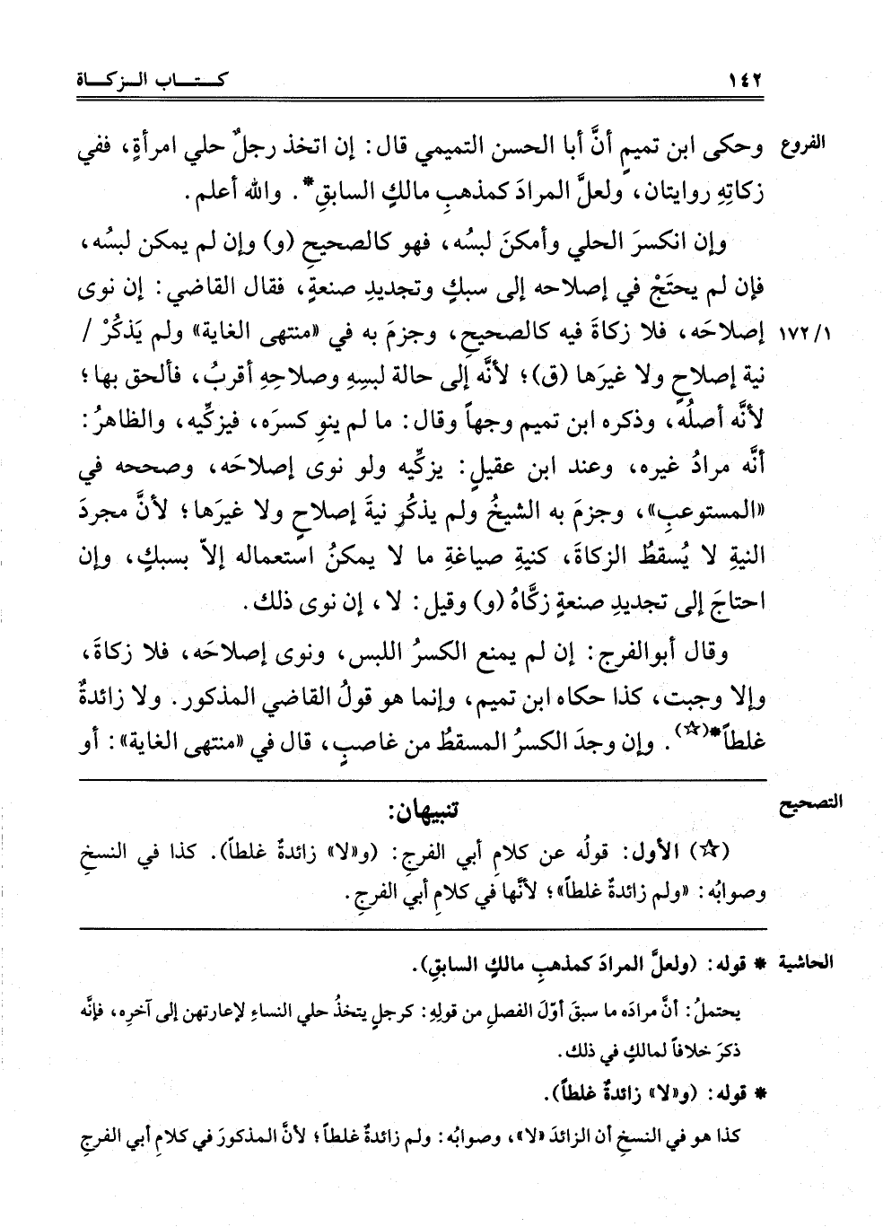 الْأَوَّلُ قَوْلُهُ عَنْ كَلَامِ أَبِي الْفَرَجِ "وَلَا زَائِدَهُ غَلَطٌ" كَذَا فِي النُّسَخِ وَصَوَابُهُ "وَلِمَ زَائِدُهُ غَلَطًا" لِأَنَّهَا فِي كَلَامِ أَبِي الفرج.