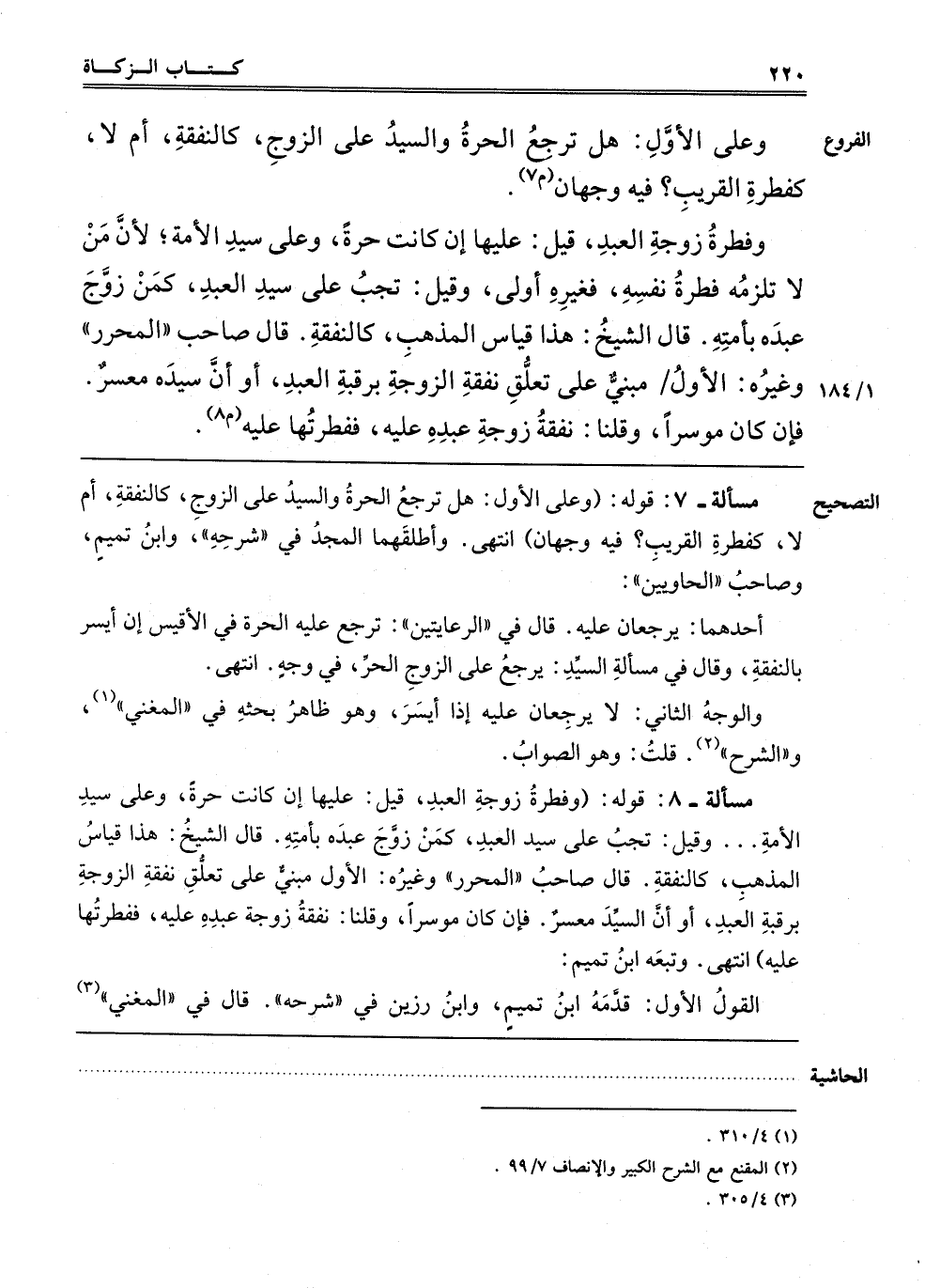 ـــــــــــــــــــــــــــــQمَسْأَلَةٌ - 7: قَوْلُهُ: وَعَلَى الْأَوَّلِ هَلْ تَرْجِعُ الْحُرَّةُ وَالسَّيِّدُ عَلَى الزَّوْجِ؟ كَالنَّفَقَةِ، أَمْ لَا كَفِطْرَةِ الْقَرِيبِ؟ فِيهِ وَجْهَانِ، انْتَهَى، وَأَطْلَقَهُمَا الْمَجْدُ فِي شَرْحِهِ، وَابْنِ تَمِيمٍ وَصَاحِبُ الْحَاوِيَيْنِ: