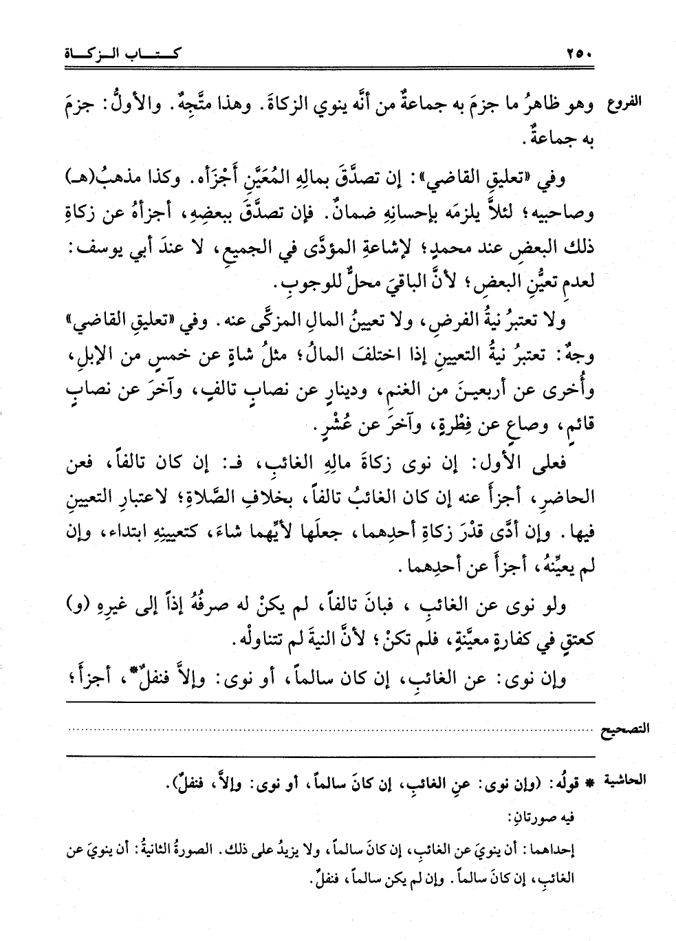 وَلَا تُعْتَبَرُ نِيَّةُ الْفَرْضِ، وَلَا تَعْيِينُ الْمَالِ الْمُزَكَّى عَنْهُ، وَفِي تَعْلِيقِ الْقَاضِي وَجْهٌ: تُعْتَبَرُ نِيَّةُ التَّعْيِينِ وَإِذَا اخْتَلَفَ الْمَالُ، مِثْلُ شَاةٍ عَنْ خَمْسٍ مِنْ الْإِبِلِ، وَأُخْرَى عَنْ أَرْبَعِينَ مِنْ الْغَنَمِ، وَدِينَارٌ عَنْ نِصَابٍ تَالِفٍ، وَآخَرُ عَنْ نِصَابٍ قَائِمٍ، وَصَاعٌ عَنْ فِطْرَةٍ، وَآخَرُ عَنْ عُشْرٍ.