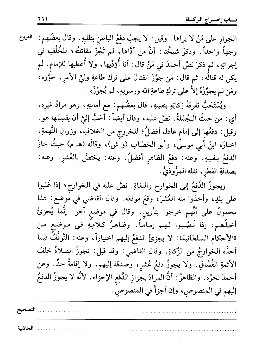 وَيَجُوزُ الدَّفْعُ إلَى الْخَوَارِجِ وَالْبُغَاةِ، نَصَّ عَلَيْهِ فِي الْخَوَارِجِ: إذَا غَلَبُوا عَلَى بَلَدٍ وَأَخَذُوا مِنْهُ الْعُشْرَ وَقَعَ مَوْقِعَهُ. وَقَالَ الْقَاضِي فِي مَوْضِعٍ: هَذَا مَحْمُولٌ عَلَى أَنَّهُمْ خَرَجُوا بِتَأْوِيلٍ. وَقَالَ فِي مَوْضِعٍ آخَرَ: إنَّمَا يُجْزِئُ أَخْذُهُمْ إذَا نَصَّبُوا لَهُمْ إمَامًا، وَظَاهِرُ كَلَامِهِ فِي مَوْضِعٍ مِنْ الْأَحْكَامِ السُّلْطَانِيَّةِ: لَا يُجْزِئُ الدَّفْعُ إلَيْهِمْ اخْتِيَارًا، وَعَنْهُ: التَّوَقُّفُ فِيمَا أَخَذَهُ الْخَوَارِجُ مِنْ الزَّكَاةِ. وَقَالَ الْقَاضِي: وَقَدْ قِيلَ: تَجُوزُ الصَّلَاةُ خَلْفَ الْأَئِمَّةِ الْفُسَّاقِ، وَلَا يَجُوزُ دَفْعُ عُشْرٍ وَصَدَقَةٍ إلَيْهِمْ وَلَا إقَامَةِ حَدٍّ. وَعَنْ أَحْمَدَ نَحْوُهُ، وَالظَّاهِرُ أَنَّ الْمُرَادَ بِجَوَازِ الدَّفْعِ الْإِجْزَاءُ: لِأَنَّهُ لَا يَجُوزُ الدَّفْعُ إلَيْهِمْ فِي الْمَنْصُوصِ، وَإِنْ أَجْزَأَ فِي الْمَنْصُوصِ.