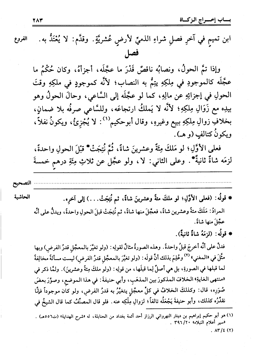1 هو أبو حكيم إبراهيم بن دينار النهرواني الرزاز أحد أئمة بغداد من الحنابل، له "شرح الهداية" "ت 556 هـ". "سير أعلام النبلاء" 20/396.
