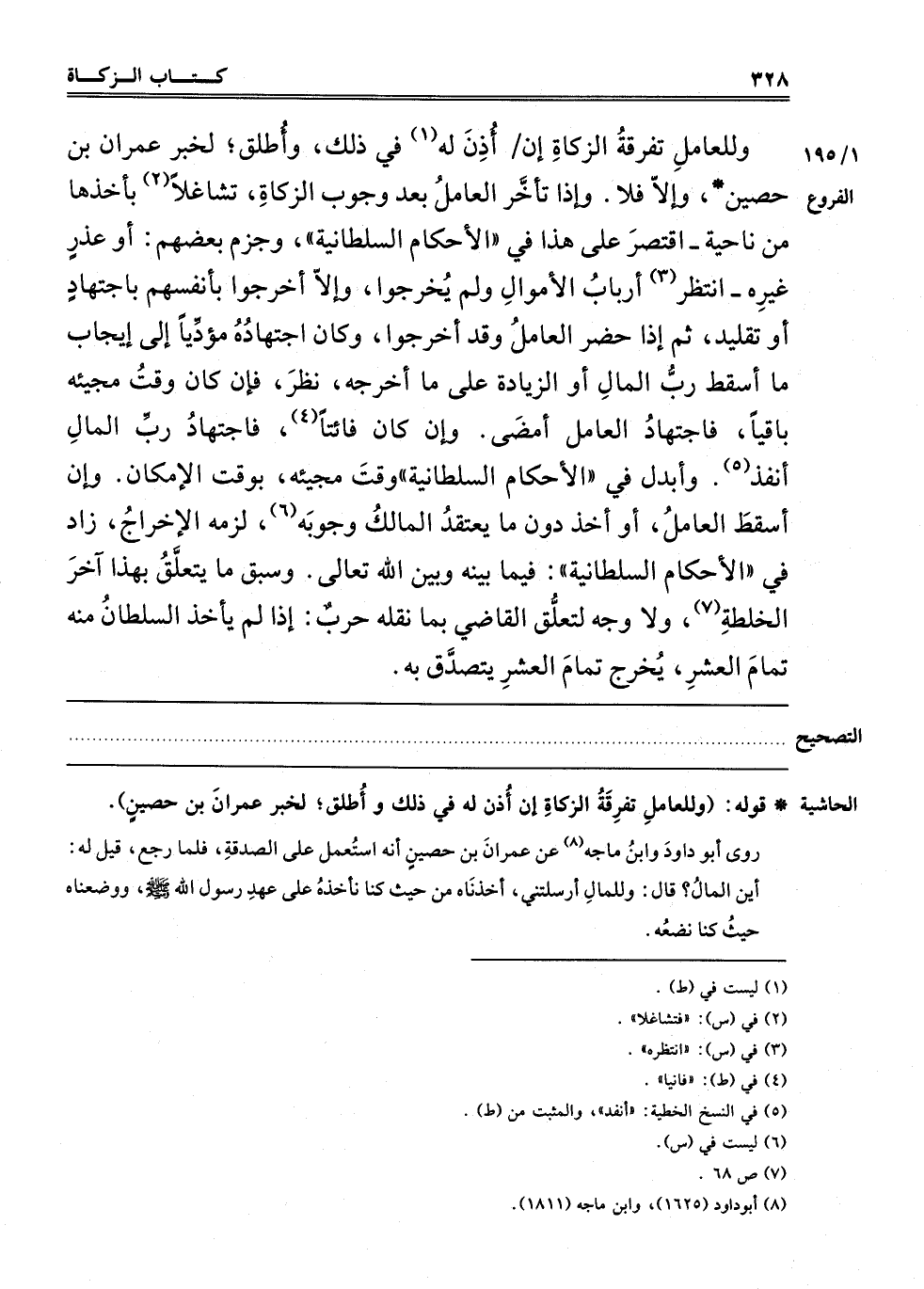 وللعامل تفرقة الزكاة إن أذن له1 فِي ذَلِكَ أَوْ أَطْلَقَ، لِخَبَرِ عِمْرَانَ بْنِ حُصَيْنٍ، وَإِلَّا فَلَا، وَإِذَا تَأَخَّرَ الْعَامِلُ بَعْدَ وُجُوبِ الزَّكَاةِ تَشَاغُلًا2 بِأَخْذِهَا مِنْ نَاحِيَةٍ اُقْتُصِرَ عَلَى هَذَا فِي الْأَحْكَامِ السُّلْطَانِيَّةِ، وَجَزَمَ بَعْضُهُمْ: أو عذر غيره انتظر3 أَرْبَابُ الْأَمْوَالِ وَلَمْ يَخْرُجُوا، وَإِلَّا أَخْرَجُوا بِأَنْفُسِهِمْ بِاجْتِهَادٍ أَوْ تَقْلِيدٍ، ثُمَّ إذَا حَضَرَ الْعَامِلُ وَقَدْ أَخْرَجُوا، وَكَانَ اجْتِهَادُهُ مُؤَدِّيًا إلَى إيجَابِ مَا أَسْقَطَ رَبُّ الْمَالِ أَوْ الزِّيَادَةِ عَلَى مَا أَخْرَجَهُ نَظَرٌ: فَإِنْ كَانَ وَقْتَ مَجِيئِهِ باقيا فاجتهاد العامل أمضى، وإن كان فائتا4، فَاجْتِهَادُ رَبِّ الْمَالِ أَنْفَذُ5. وَأَبْدَلُ فِي الْأَحْكَامِ السلطانية "وَقْتُ مَجِيئِهِ": وَقْتُ الْإِمْكَانِ. وَإِنْ أَسْقَطَ الْعَامِلُ أَوْ أَخَذَ دُونَ مَا يَعْتَقِدُ الْمَالِكُ وُجُوبَهُ6، لَزِمَهُ الْإِخْرَاجُ، زَادَ فِي الْأَحْكَامِ السُّلْطَانِيَّةِ: فِيمَا بَيْنَهُ وَبَيْنَ اللَّهِ تَعَالَى، وَسَبَقَ مَا يَتَعَلَّقُ بِهَذَا آخِرُ الْخَلْطَةِ7، وَلَا وَجْهَ لِتَعَلُّقِ الْقَاضِي بِمَا نَقَلَهُ حَرْبٌ: إذَا لَمْ يَأْخُذْ السُّلْطَانُ مِنْهُ تَمَامَ الْعُشْرِ يُخْرِجُ تَمَامَ الْعُشْر يَتَصَدَّقُ به.