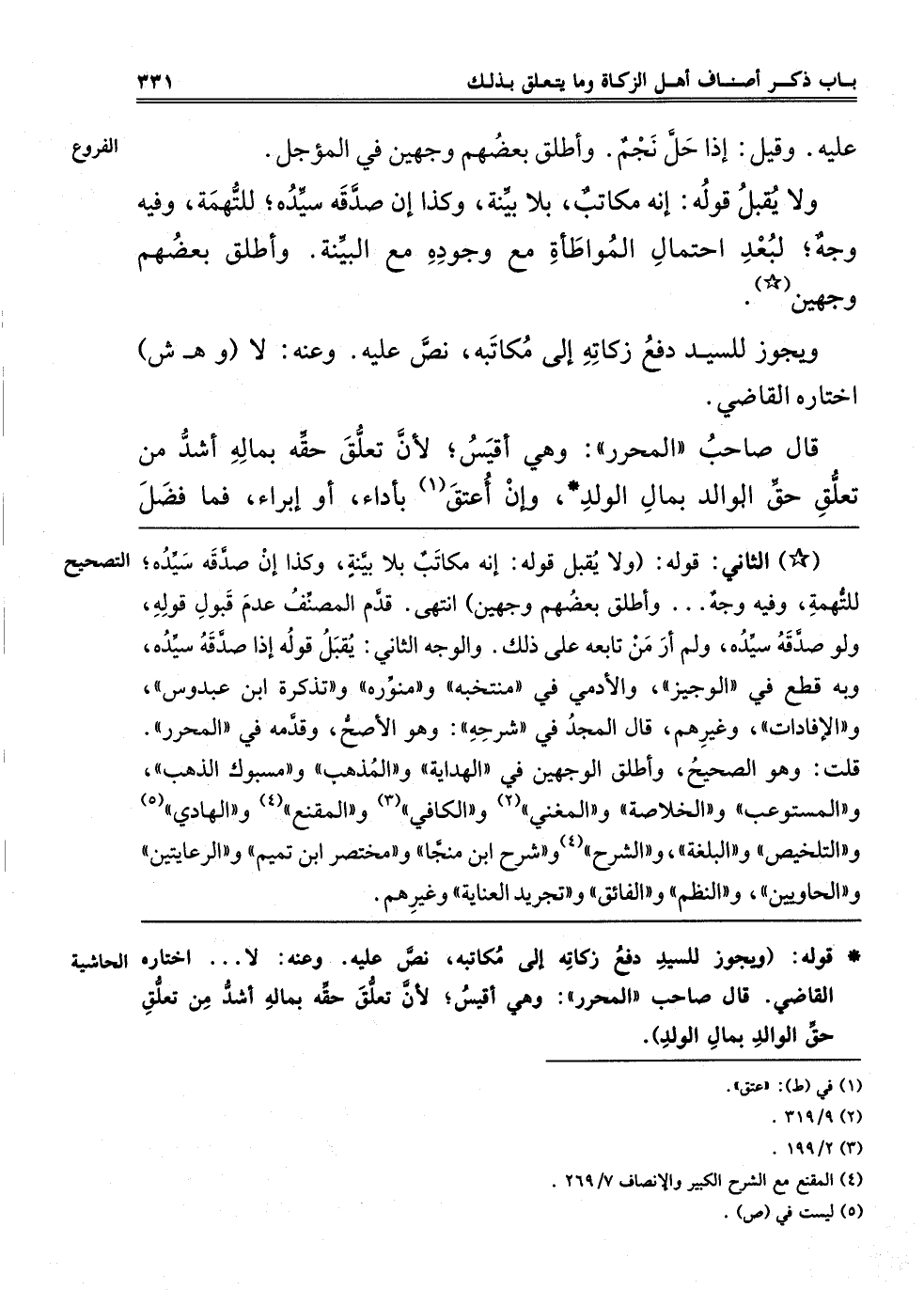 ـــــــــــــــــــــــــــــQ"*" الثَّانِي: قَوْلُهُ: وَلَا يُقْبَلُ قَوْلُهُ إنَّهُ مُكَاتَبٌ بِلَا بَيِّنَةٍ وَكَذَا إنْ صَدَّقَهُ سَيِّدُهُ، لِلتُّهْمَةِ، وَفِيهِ وَجْهٌ وَأَطْلَقَ بَعْضُهُمْ وَجْهَيْنِ، انْتَهَى الْوَجْهُ الْأَوَّلُ قَدَّمَهُ الْمُصَنِّفُ: عَدَمُ قَبُولِ قَوْلِهِ وَلَوْ صَدَّقَهُ سَيِّدُهُ، وَلَمْ أَرَ مَنْ تَابَعَهُ عَلَى ذَلِكَ. وَالْوَجْهُ الثَّانِي يُقْبَلُ قَوْلُهُ إذَا صَدَّقَهُ سَيِّدُهُ، وَبِهِ قَطَعَ فِي الْوَجِيزِ، وَالْآدَمِيِّ فِي مُنْتَخَبِهِ وَمُنَوَّرِهِ وَتَذْكِرَةِ ابْنِ عَبْدُوسٍ، وَالْإِفَادَاتِ، وَغَيْرِهِمْ، قَالَ الْمَجْدُ فِي شَرْحِهِ، وَهُوَ الْأَصَحُّ، وَقَدَّمَهُ فِي مُحَرَّرِهِ قُلْت: وَهُوَ الصَّحِيحُ، وَأَطْلَقَ الْوَجْهَيْنِ فِي الْهِدَايَةِ وَالْمُذَهَّبِ وَالْمُسْتَوْعِبِ وَالْخُلَاصَةِ وَالْمُغْنِي2 وَالْكَافِي3 وَالْمُقْنِعِ4 وَالْهَادِي5 وَالتَّلْخِيصِ وَالْبُلْغَةِ وَالشَّرْحِ4 وَشَرْحِ ابْنِ مُنَجَّى وَمُخْتَصَرِ ابْنِ تَمِيمٍ وَالرِّعَايَتَيْنِ وَالْحَاوِيَيْنِ وَالنَّظْمِ وَالْفَائِقِ وتجريد العناية وغيرهم.