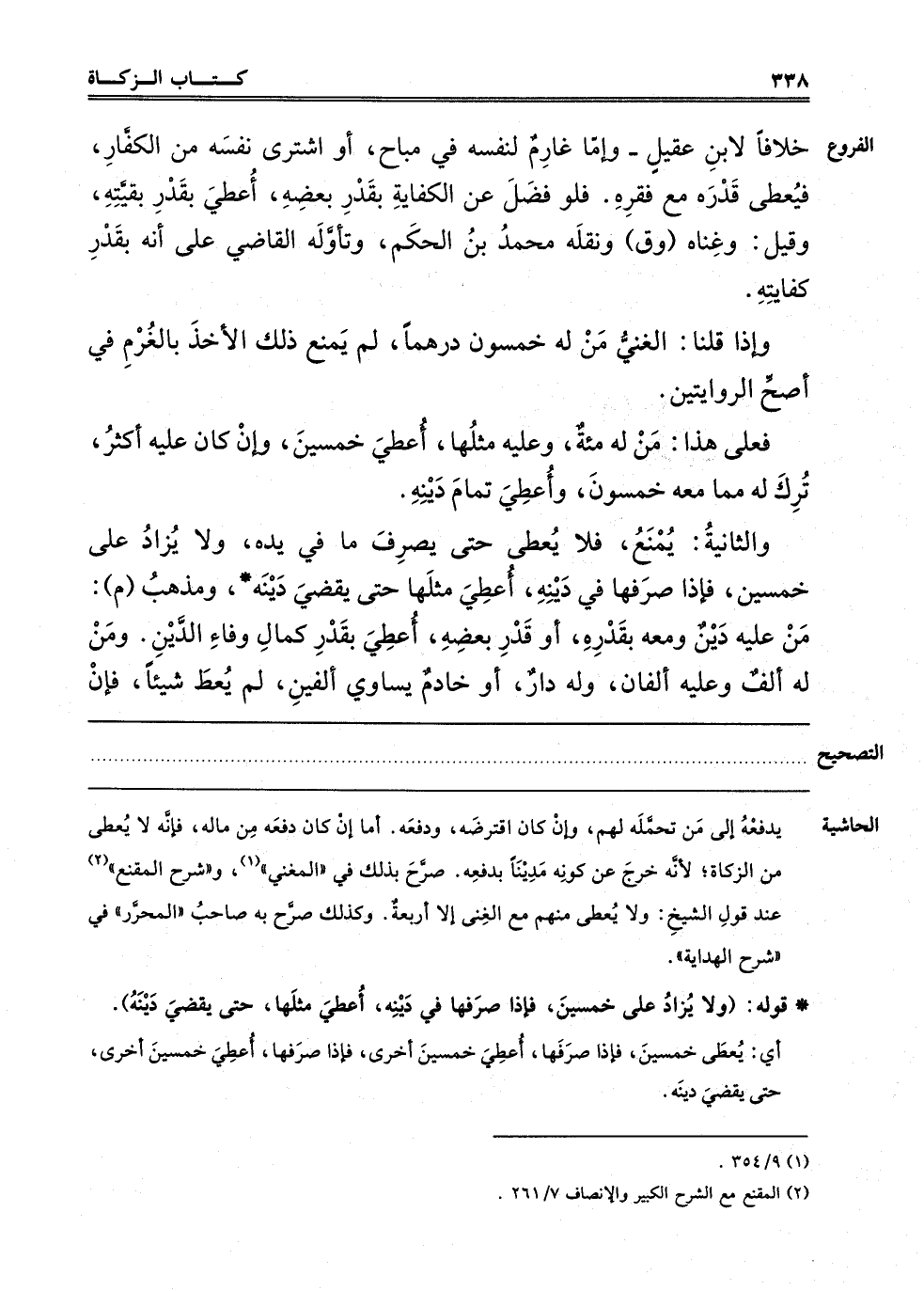 خِلَافًا لِابْنِ عَقِيلٍ وَإِمَّا غَارِمٌ لِنَفْسِهِ فِي مُبَاحٍ، أَوْ اشْتَرَى نَفْسَهُ مِنْ الْكُفَّارِ، فَيُعْطَى قَدْرَهُ مَعَ فَقْرِهِ، فَلَوْ فَضَلَ عَنْ الْكِفَايَةِ بِقَدْرِ بَعْضِهِ أُعْطِيَ بِقَدْرِ بَقِيَّتِهِ وَقِيلَ: وَغِنَاهُ "وق" وَنَقَلَهُ مُحَمَّدُ بْنُ الْحَكَمِ، وَتَأَوَّلَهُ الْقَاضِي عَلَى أَنَّهُ بِقَدْرِ كِفَايَتِهِ.