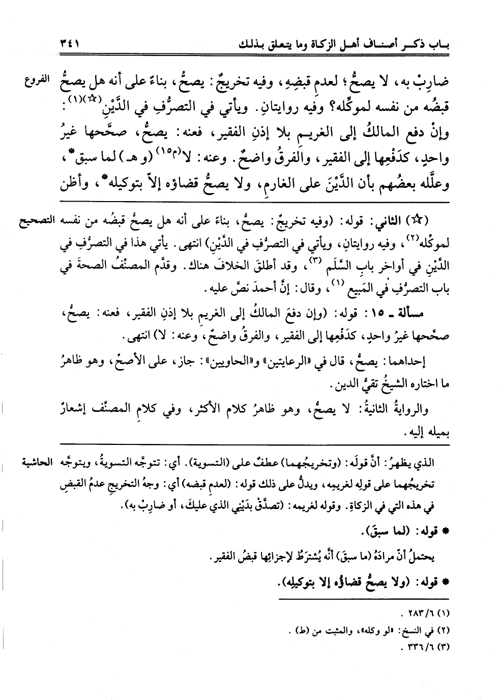 مَسْأَلَةٌ - 15: قَوْلُهُ: وَإِنْ دَفَعَ الْمَالِكُ إلَى الْغَرِيمِ بِلَا إذْنِ الْفَقِيرِ، فَعَنْهُ: يَصِحُّ، صَحَّحَهَا غَيْرُ وَاحِدٍ، كَدَفْعِهَا إلَى الْفَقِيرِ، وَالْفَرْقُ وَاضِحٌ، وَعَنْهُ: لَا، انْتَهَى.