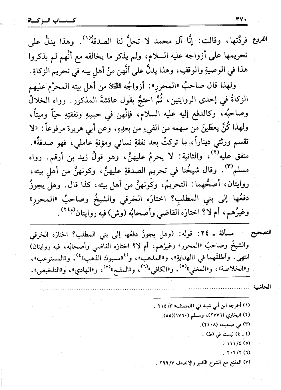 ـــــــــــــــــــــــــــــQمَسْأَلَةٌ - 23: قَوْلُهُ: وَهَلْ يَجُوزُ دَفْعُهَا إلَى بَنِي الْمُطَّلِبِ، اخْتَارَهُ الْخِرَقِيُّ وَالشَّيْخُ وَصَاحِبُ الْمُحَرَّرِ وَغَيْرُهُمْ، أَمْ لَا؟ اخْتَارَهُ الْقَاضِي وَأَصْحَابُهُ، فِيهِ رِوَايَتَانِ، انْتَهَى، وَأَطْلَقَهُمَا فِي الْهِدَايَةِ وَالْمُذَهَّبِ و4"مسبوك الذَّهَبِ"4 وَالْمُسْتَوْعِبِ وَالْخُلَاصَةِ وَالْمُغْنِي5، وَالْكَافِي6 وَالْمُقْنِعِ7 وَالْهَادِي والتلخيص،