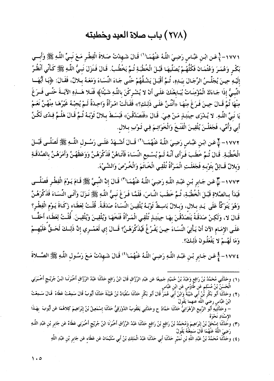 1774 - عن جابر بن عبد الله رضي الله عنهما قال شهدت مع رسول الله صلى الله عليه وسلم الصلاة