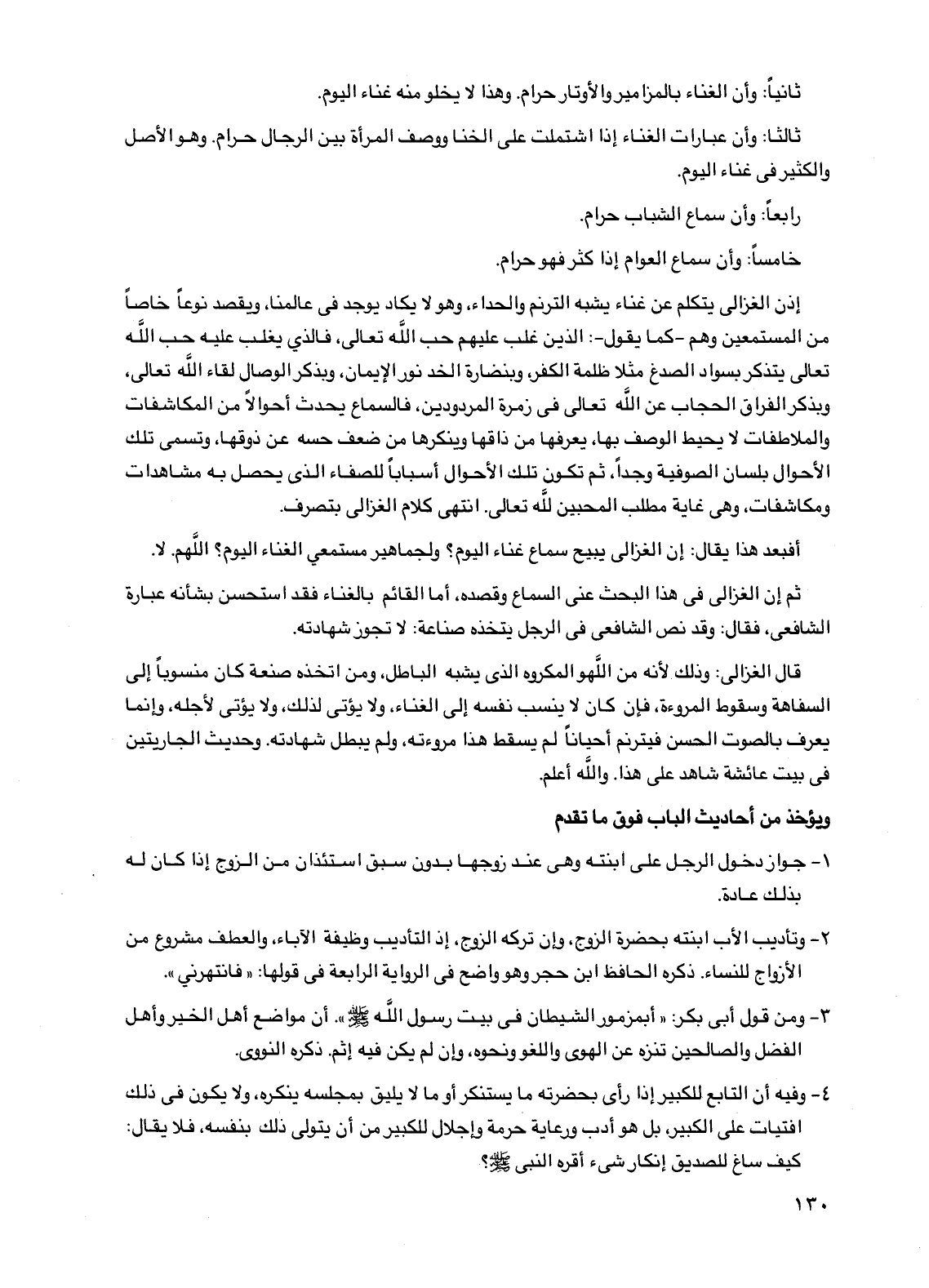 ثانياً: وأن الغناء بالمزامير والأوتار حرام. وهذا لا يخلو منه غناء اليوم.