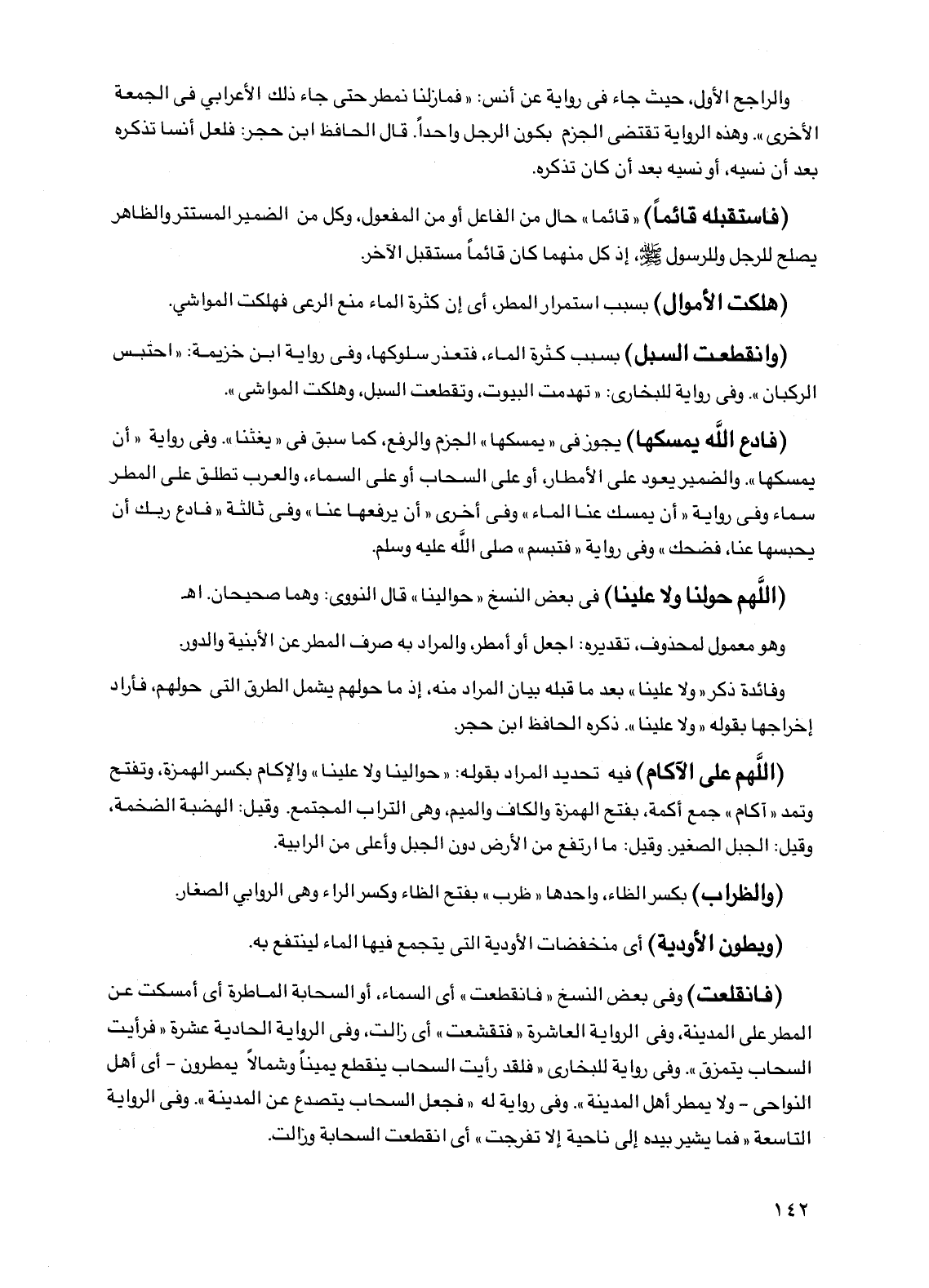 (اللهم حولنا ولا علينا) في بعض النسخ "حوالينا" قال النووي: وهما صحيحان. اهـ.