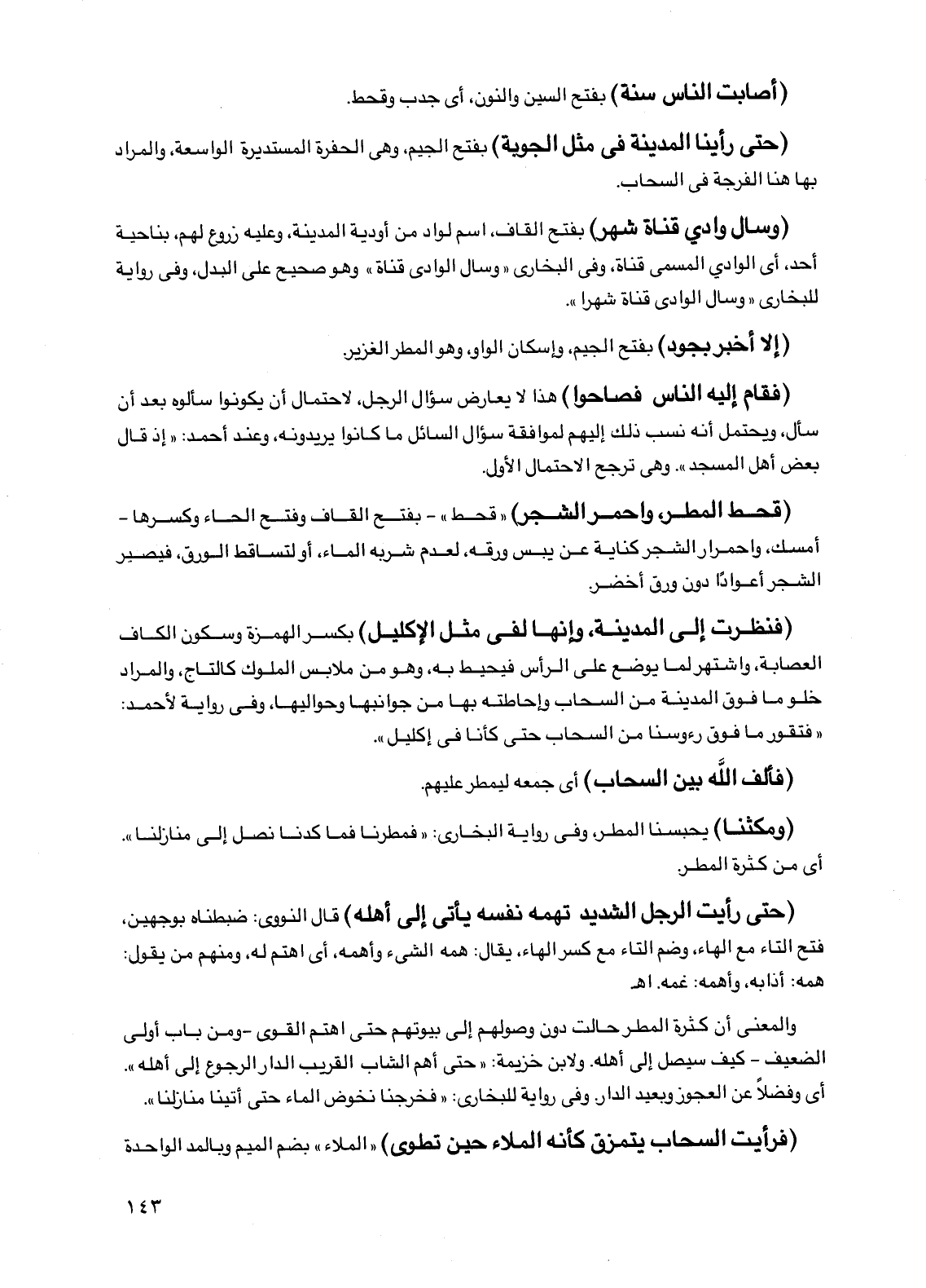 والمعنى أن كثرة المطر حالت دون وصولهم إلى بيوتهم حتى اهتم القوي -ومن باب أولى الضعيف- كيف سيصل إلى أهله. ولابن خزيمة: "حتى أهم الشاب القريب الدار الرجوع إلى أهله". أي وفضلاً عن العجوز وبعيد الدار. وفي رواية للبخاري: "فخرجنا نخوض الماء حتى أتينا منازلنا".