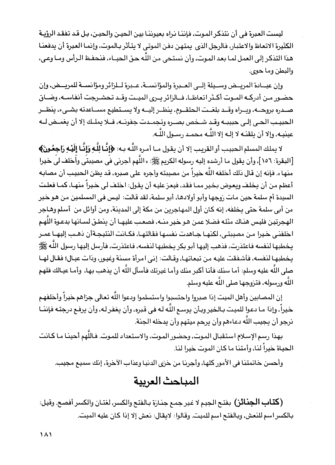 بهذا رسم الإسلام استقبال الموت، وحضور الموت، والاستعداد للموت. فاللهم أحينا ما كانت الحياة خيراً لنا، وأمتنا ما كان الموت خيراً لنا.