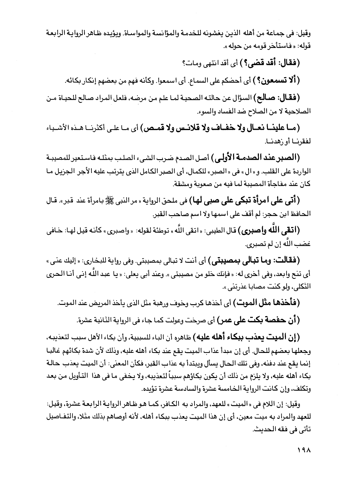 (أتى على امرأة تبكي على صبي لها) في ملحق الرواية "مر النبي صلى الله عليه وسلم بامرأة عند قبر". قال الحافظ ابن حجر: لم أقف على اسمها ولا اسم صاحب القبر.