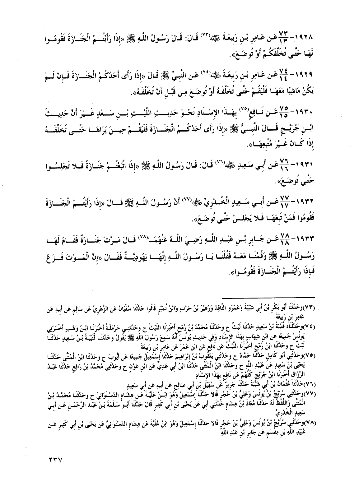 1928 - عن عامر بن ربيعة رضي الله عنه قال: قال رسول الله صلى الله عليه وسلم "إذا رأيتم الجنازة فقوموا لها حتى تخلفكم أو توضع".