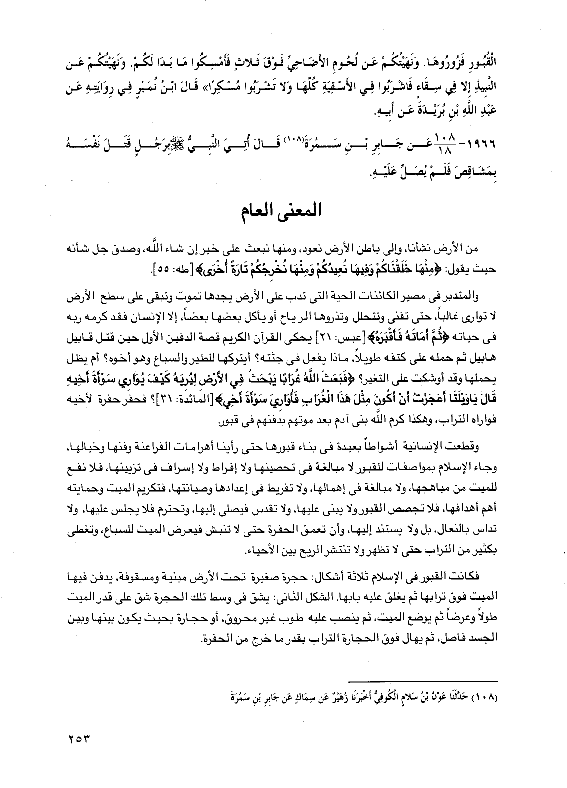فكانت القبور في الإسلام ثلاثة أشكال: حجرة صغيرة تحت الأرض مبنية ومسقوفة، يدفن فيها الميت فوق ترابها ثم يغلق عليه بابها. الشكل الثاني: يشق في وسط تلك الحجرة شق على قدر الميت طولاً وعرضاً ثم يوضع الميت، ثم ينصب عليه طوب غير محروق، أو حجارة بحيث يكون بينها وبين الجسد فاصل، ثم يهال فوق الحجارة التراب بقدر ما خرج من الحفرة.