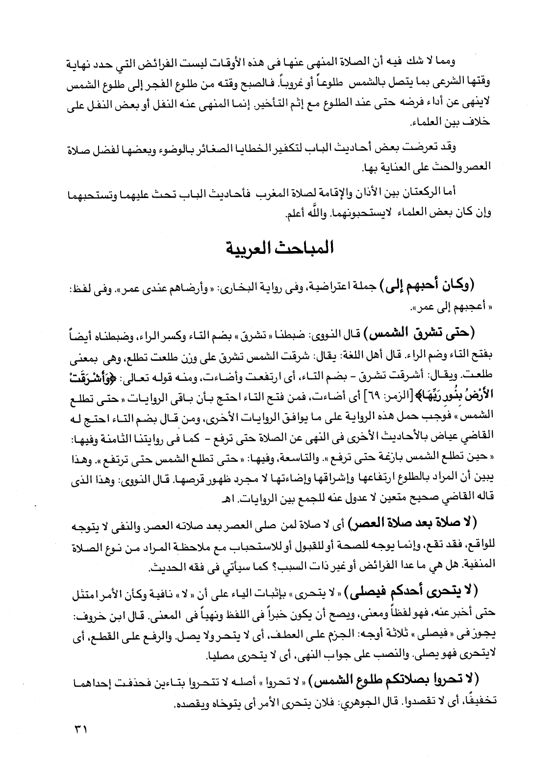 (حتى تشرق الشمس) قال النووي: ضبطنا "تشرق" بضم التاء وكسر الراء، وضبطناه أيضاً بفتح التاء وضم الراء. قال أهل اللغة: يقال: شرقت الشمس تشرق على وزن طلعت تطلع، وهي بمعنى طلعت. ويقال: أشرقت تشرق -بضم التاء، أي ارتفعت وأضاءت، ومنه قوله تعالى: {وأشرقت الأرض بنور ربها} [الزمر: 69] أي أضاءت، فمن فتح التاء احتج بأن باقي الروايات "حتى تطلع الشمس" فوجب حمل هذه الرواية على ما يوافق الروايات الأخرى، ومن قال بضم التاء احتج له القاضي عياض بالأحاديث الأخرى في النهي عن الصلاة حتى ترفع -كما في روايتنا الثامنة وفيها: "حين تطلع الشمس بازغة حتى ترفع". والتاسعة، وفيها: "حتى تطلع الشمس حتى ترتفع". وهذا يبين أن المراد بالطلوع ارتفاعها وإشراقها وإضاءتها لا مجرد ظهور قرصها. قال النووي: وهذا الذي قاله القاضي صحيح متعين لا عدول عنه للجمع بين الروايات. اهـ.