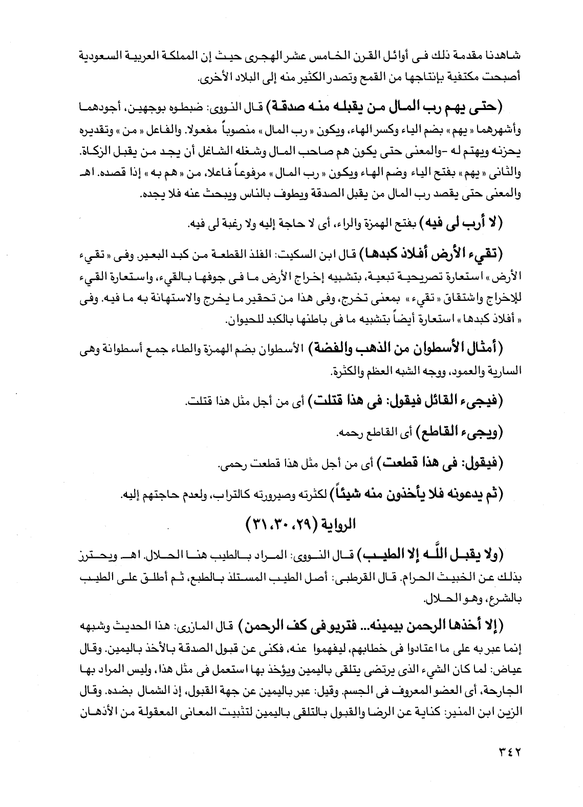 (حتى يهم رب المال من يقبله منه صدقة) قال النووي: ضبطوه بوجهين، أجودهما وأشهرهما "يهم" بضم الياء وكسر الهاء، ويكون "رب المال" منصوباً مفعولاً. والفاعل "من" وتقديره يحزنه ويهتم له -والمعنى حتى يكون هم صاحب المال وشغله الشاغل أن يجد من يقبل الزكاة. والثاني "يهم" بفتح التاء وضم الهاء ويكون "رب المال" مرفوعاً فاعلاً، من "هم به" إذا قصده. اهـ والمعنى حتى يقصد رب المال من يقبل الصدقة ويطوف بالناس ويبحث عنه فلا يجده.