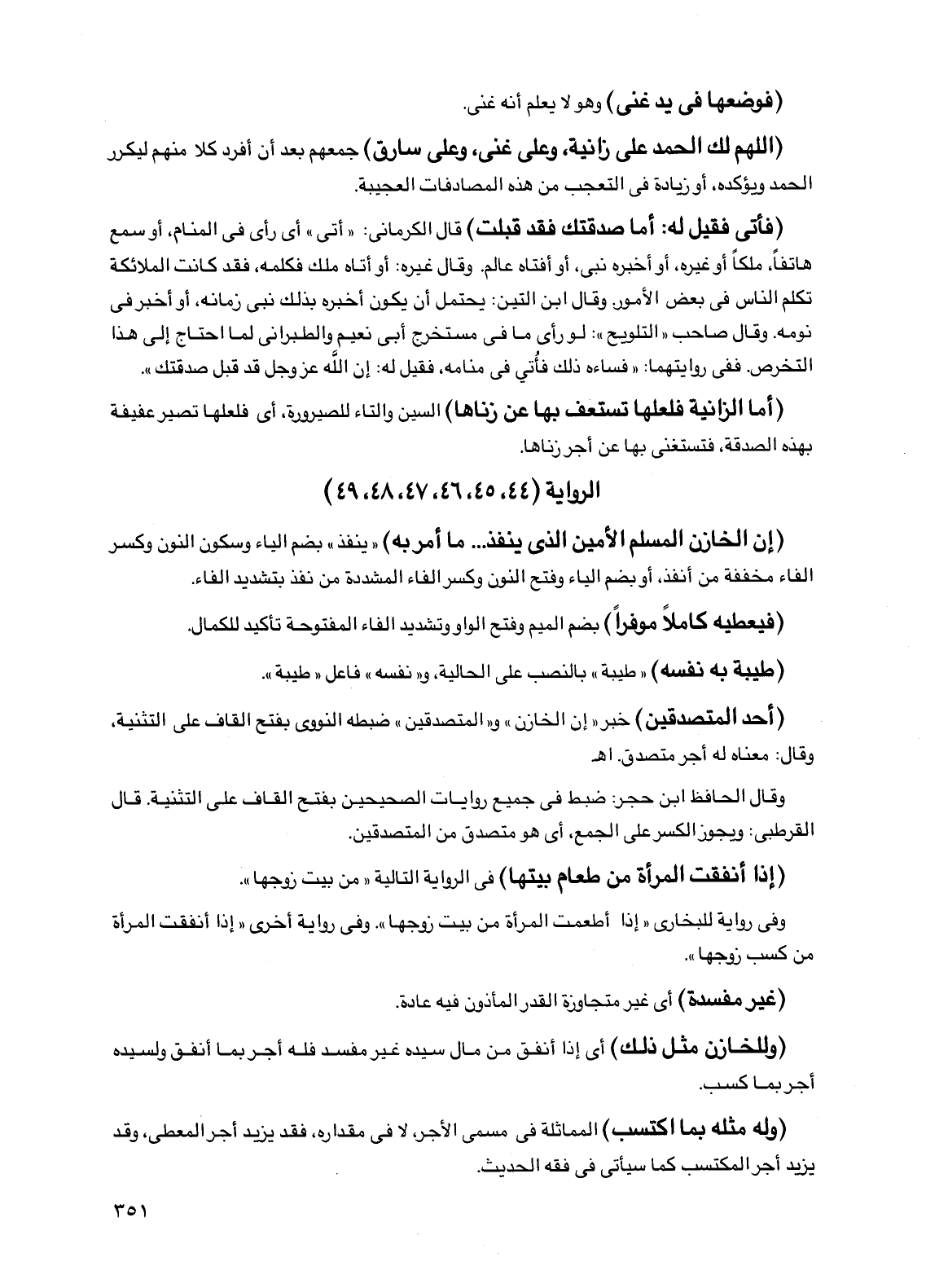 (إن الخازن المسلم الأمين الذي ينفذ .... ما أمر به) "ينفذ" بضم الياء وسكون النون وكسر الفاء مخففة من أنفذ، أو بضم الياء وفتح النون وكسر الفاء المشددة من نفذ بتشديد الفاء.