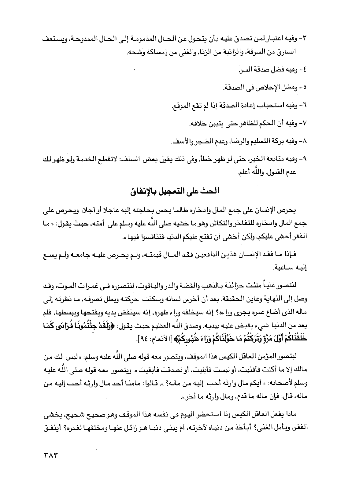 الحث على التعجيل بالإنفاق