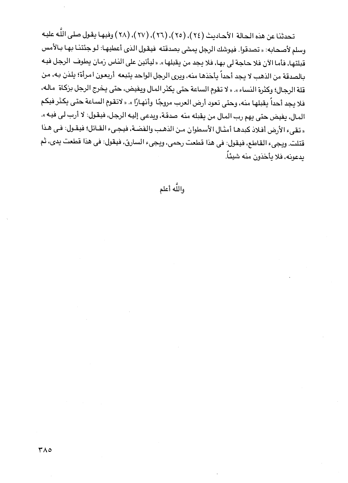 تحدثنا عن هذه الحالة الأحاديث (24)، (25)، (26)، (27)، (28) وفيها يقول صلى الله عليه وسلم لأصحابه: "تصدقوا. فيوشك الرجل يمشي بصدقته فيقول الذي أعطيها: لو جئتنا بها بالأمس قبلتها، فأما الآن فلا حاجة لي بها، فلا يجد من يقبلها". "ليأتين على الناس زمان يطوف الرجل فيه بالصدقة من الذهب لا يجد أحداً يأخذها منه، ويرى الرجل الواحد يتبعه أربعون امرأة؛ يلذن به، من قلة الرجال؛ وكثرة النساء". "لا تقوم الساعة حتى يكثر المال ويفيض، حتى يخرج الرجل بزكاة ماله، فلا يجد أحداً يقبلها منه، وحتى تعود أرض العرب مروجاً وأنهاراً". "لا تقوم الساعة حتى يكثر فيكم المال، يفيض حتى يهم رب المال من يقبله منه صدقة، ويدعى إليه الرجل، فيقول: لا أرب لي فيه". "تقيء الأرض أفلاذ كبدها أمثال الأسطوان من الذهب والفضة، فيجيء القاتل؛ فيقول: في هذا قتلت، ويجيء القاطع، فيقول: في هذا قطعت رحمي، ويجيء السارق، فيقول: في هذا قطعت يدي، ثم يدعونه، فلا يأخذون منه شيئاً.