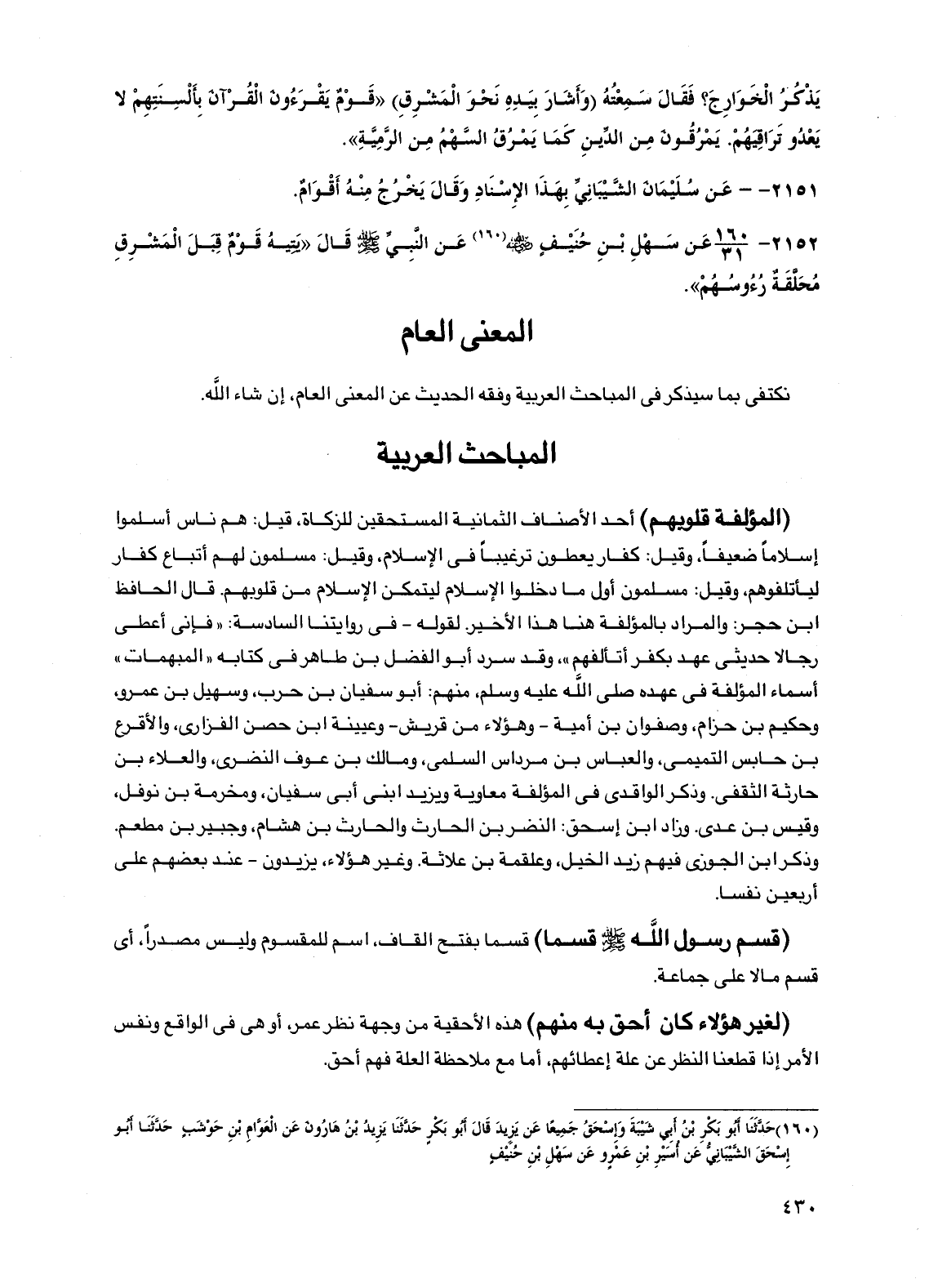نكتفي بما سيذكر في المباحث العربية وفقه الحديث عن المعنى العام، إن شاء الله.