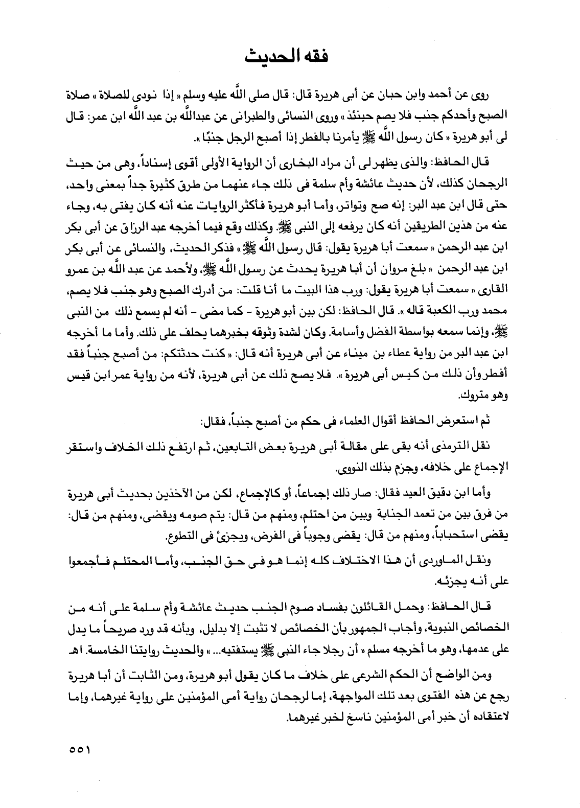 وأما ابن دقيق العيد فقال: صار ذلك إجماعاً، أو كالإجماع، لكن من الآخذين بحديث أبي هريرة من فرق بين من تعمد الجنابة وبين من احتلم، ومنهم من قال: يتم صومه ويقضي، ومنهم من قال: يقضي استحباباً، ومنهم من قال: يقضي وجوباً في الفرض، ويجزئ في التطوع.