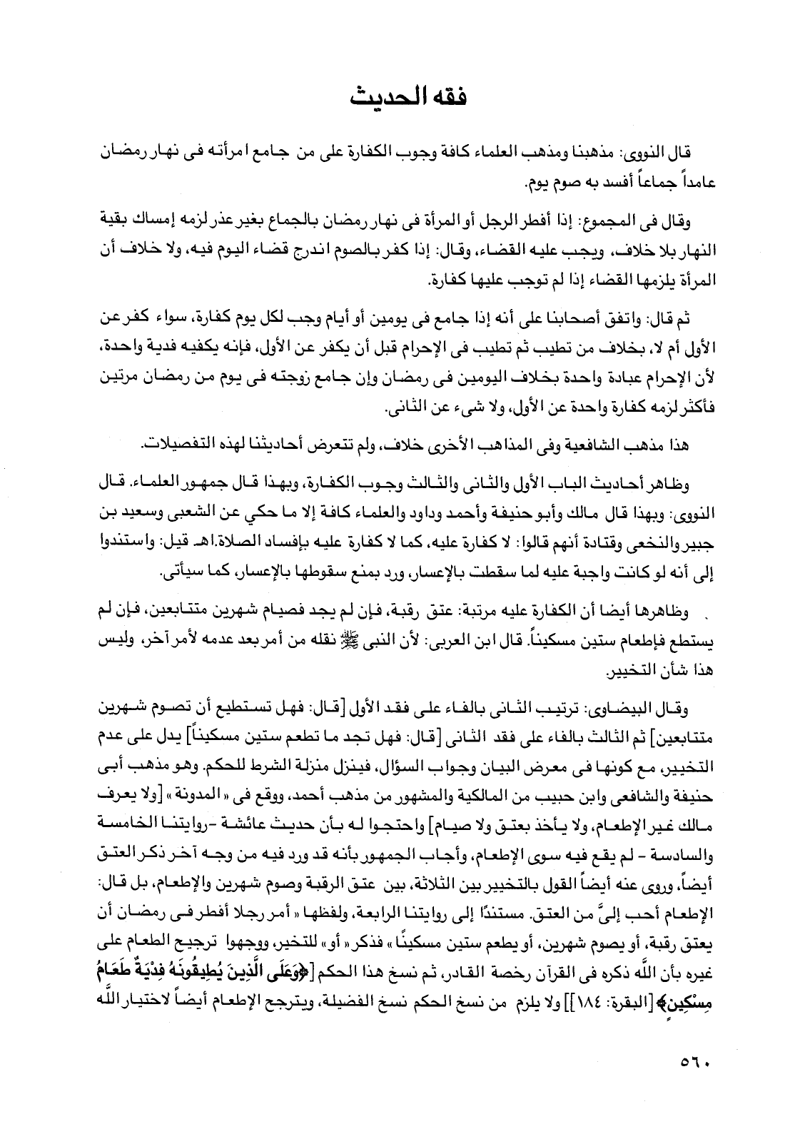 قال النووي: مذهبنا ومذهب العلماء كافة وجوب الكفارة على من جامع امرأته في نهار رمضان عامداً جماعاً أفسد به صوم يوم.