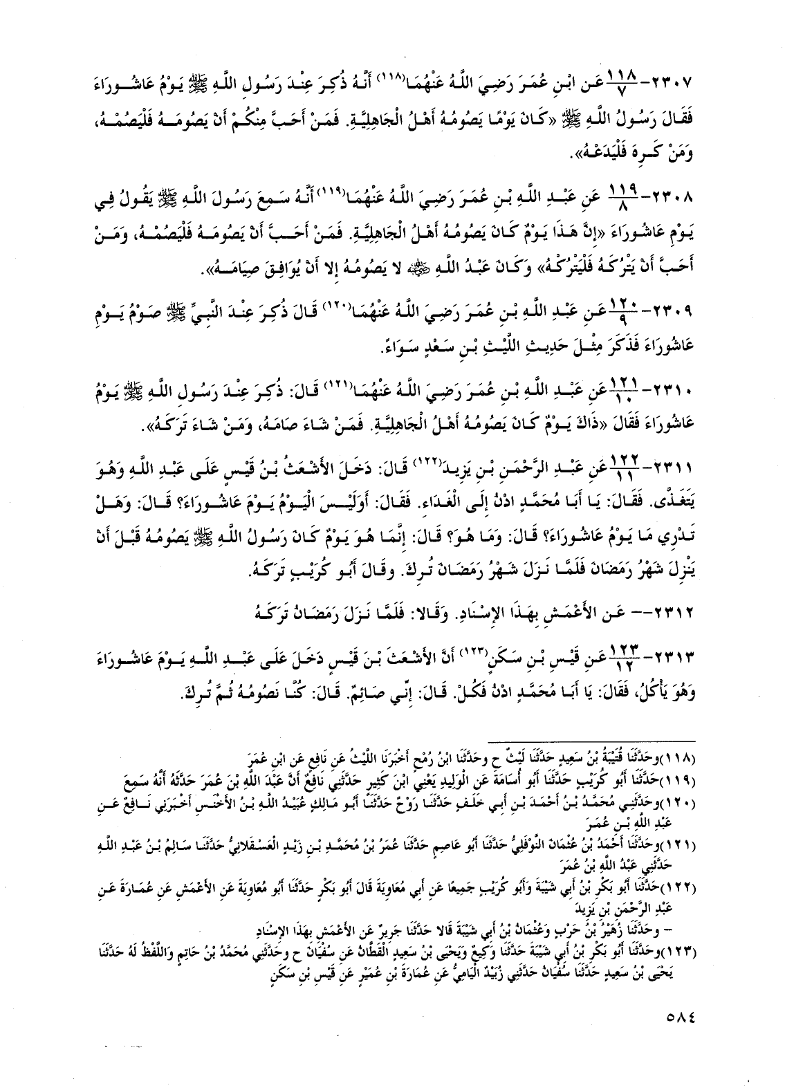 2313 - عن قيس بن سكن أن الأشعث بن قيس دخل على عبد الله يوم عاشوراء وهو يأكل، فقال: يا أبا محمد ادن فكل. قال: إني صائم. قال: كنا نصومه ثم ترك.