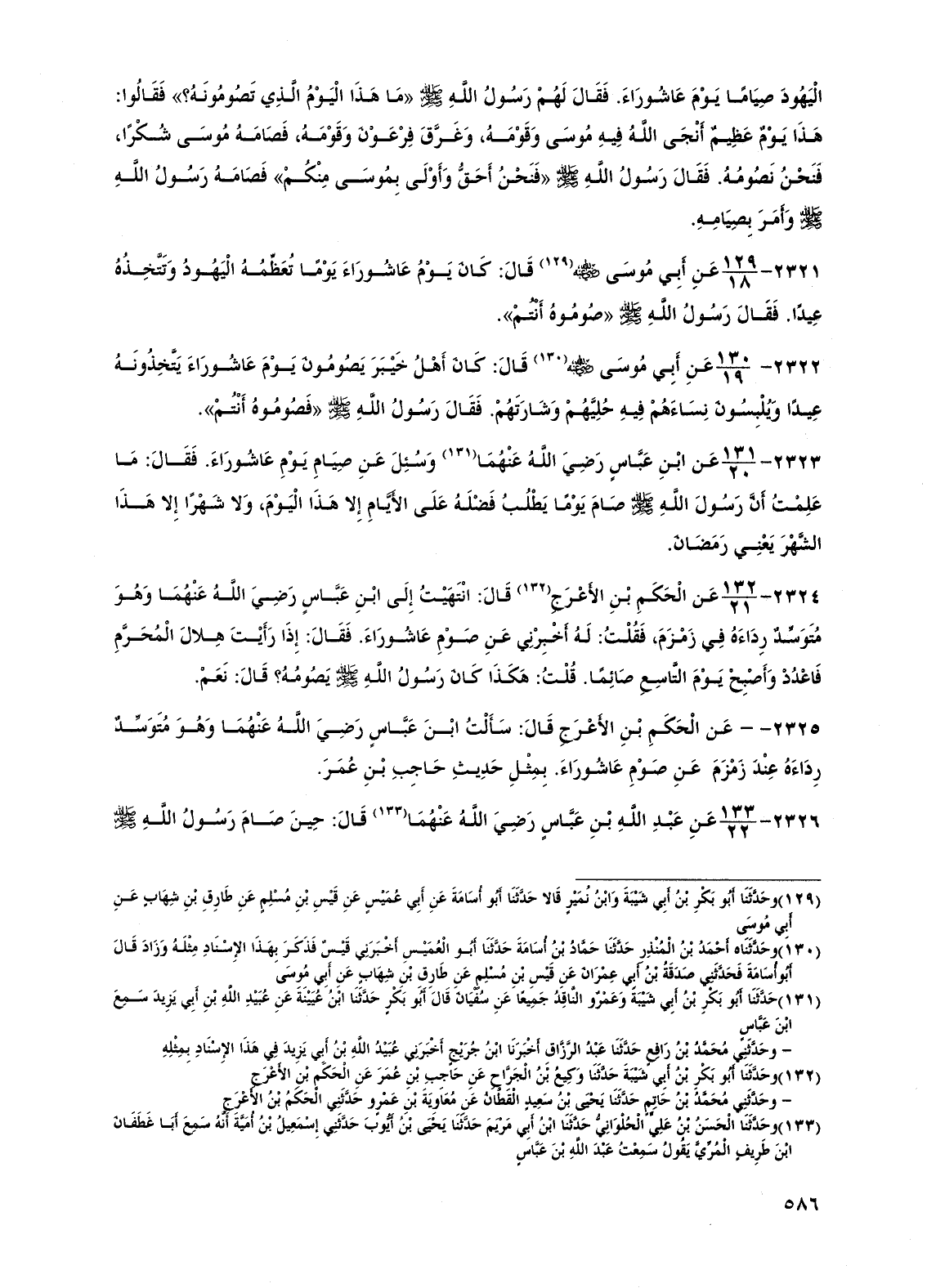 2322 - عن أبي موسى رضي الله عنه قال: كان أهل خيبر يصومون يوم عاشوراء يتخذونه عيداً ويلبسون نساءهم فيه حليهم وشارتهم. فقال رسول الله صلى الله عليه وسلم "فصوموه أنتم".