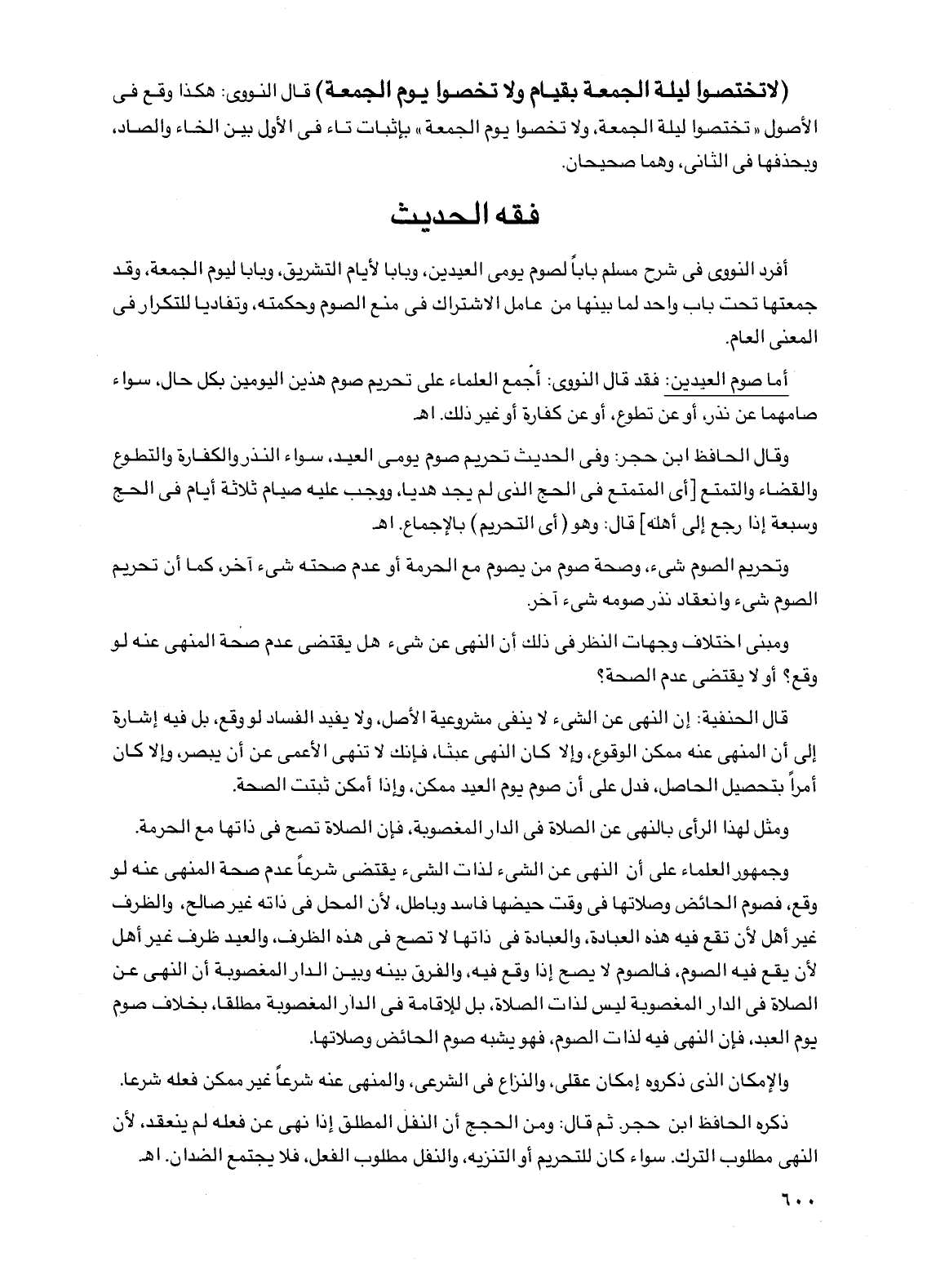 أفرد النووي في شرح مسلم باباً لصوم يومي العيدين، وباباً لأيام التشريق، وباباً ليوم الجمعة، وقد جمعتها تحت باب واحد لما بينها من عامل الاشتراك في منع الصوم وحكمته، وتفادياً للتكرار في المعنى العام.